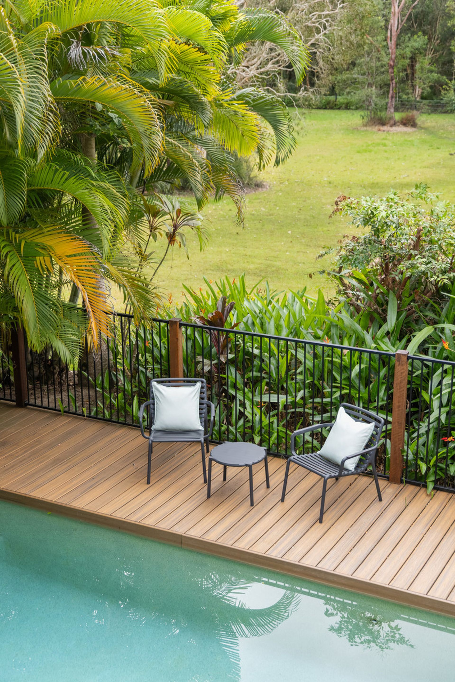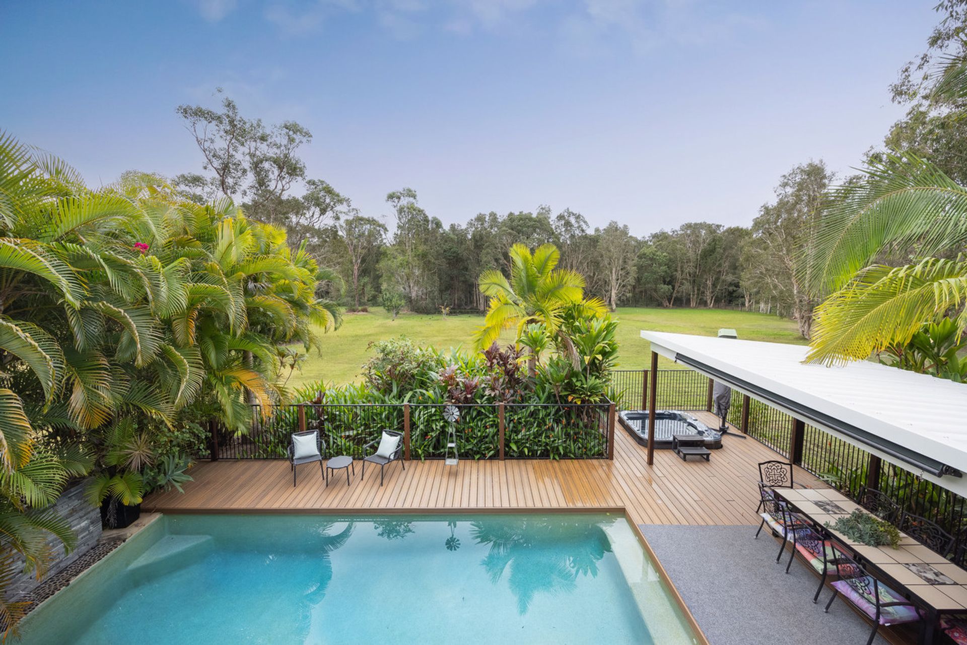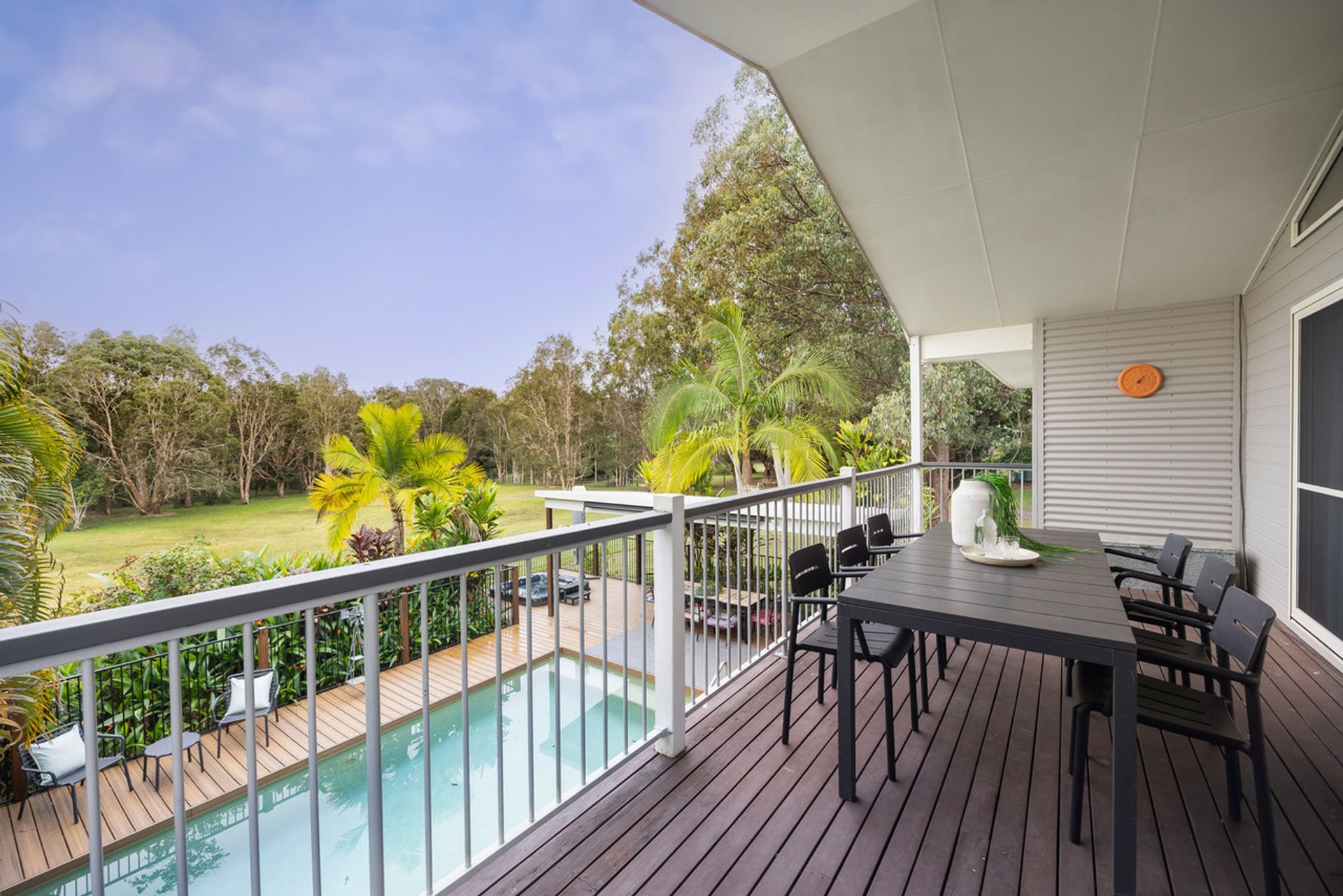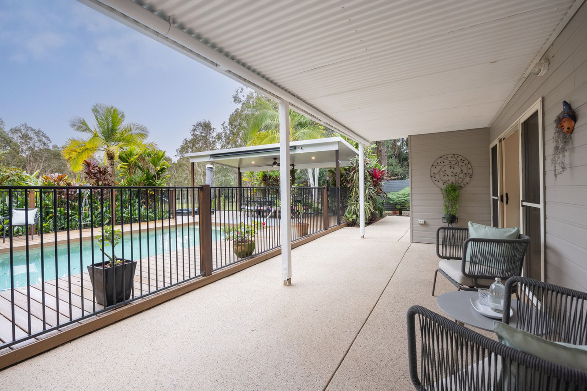 - Covered verandah with sweeping views of pool and paddock
