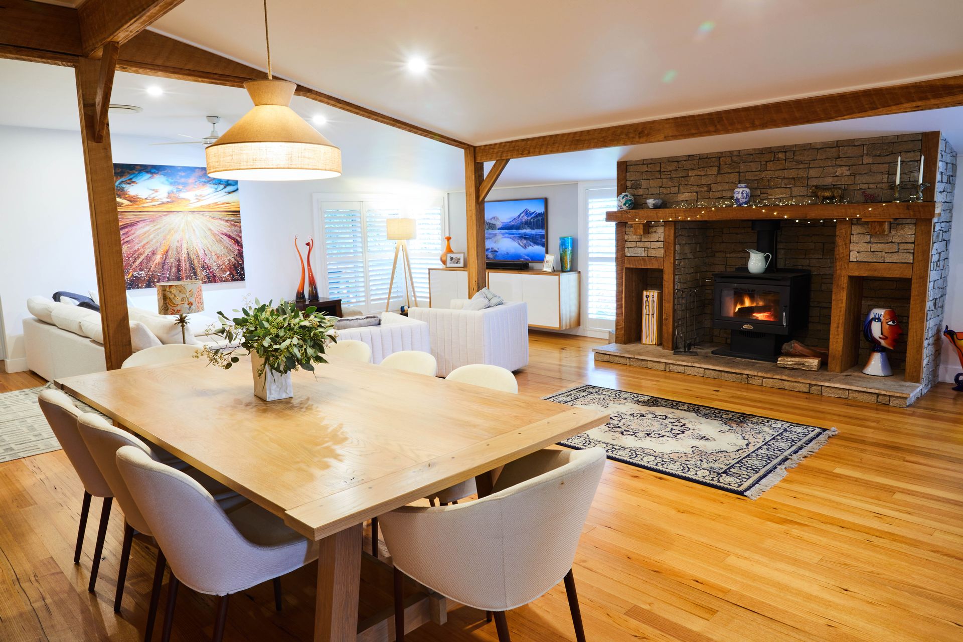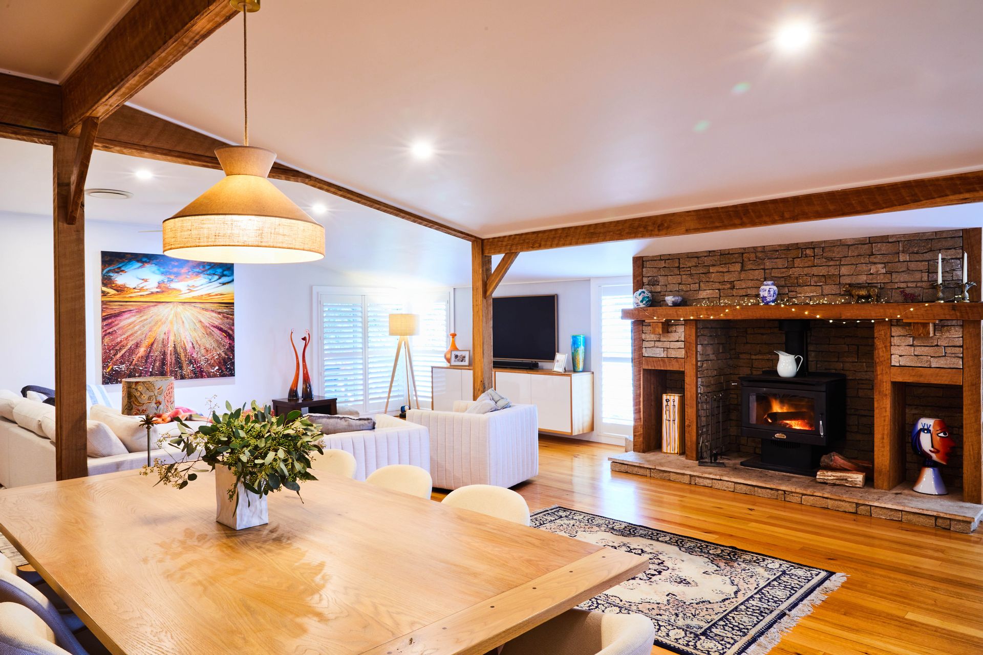 • Character-filled 4-bedroom, 2-bathroom country home with exposed timber beams and a unique stone fireplace