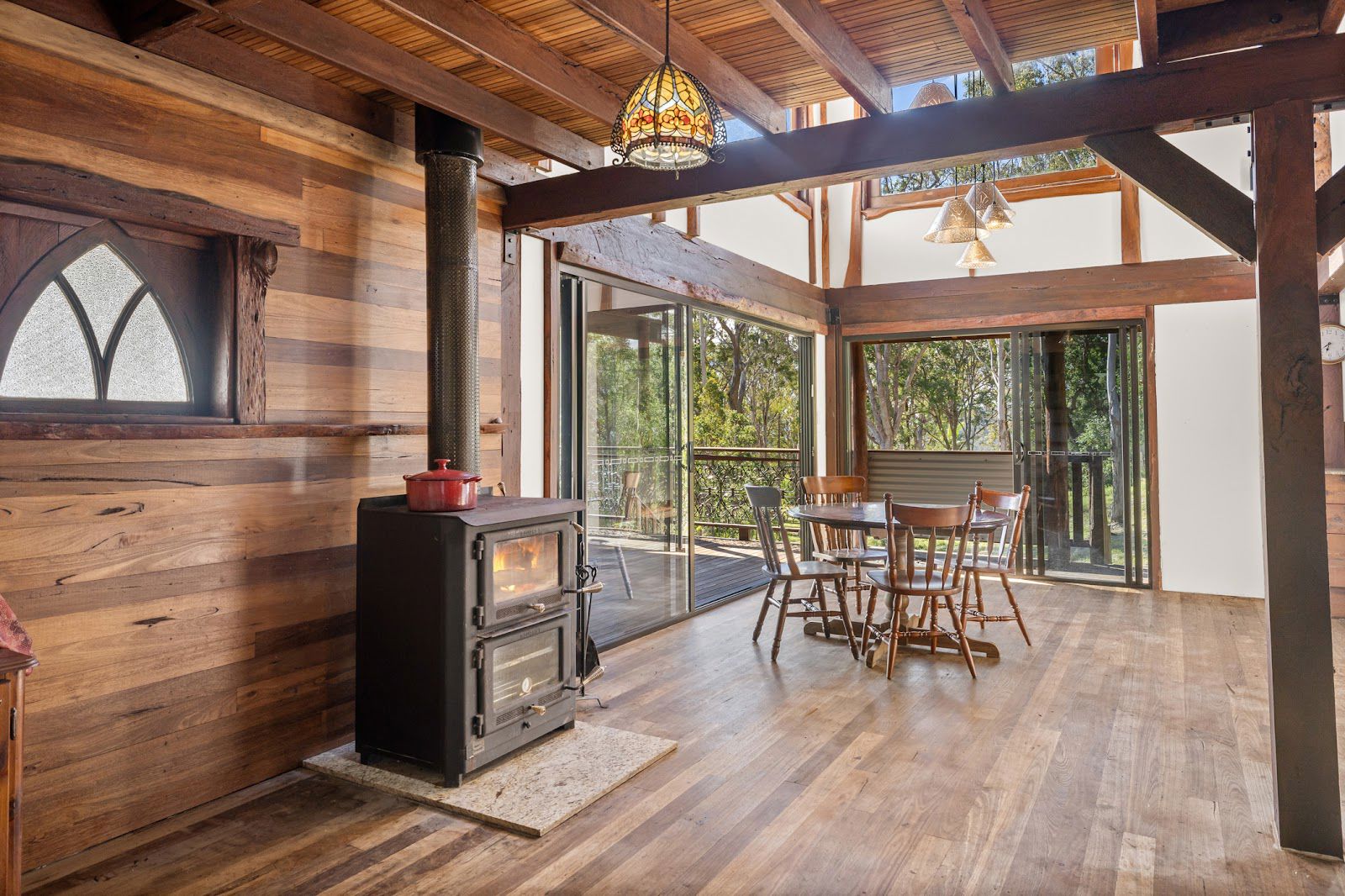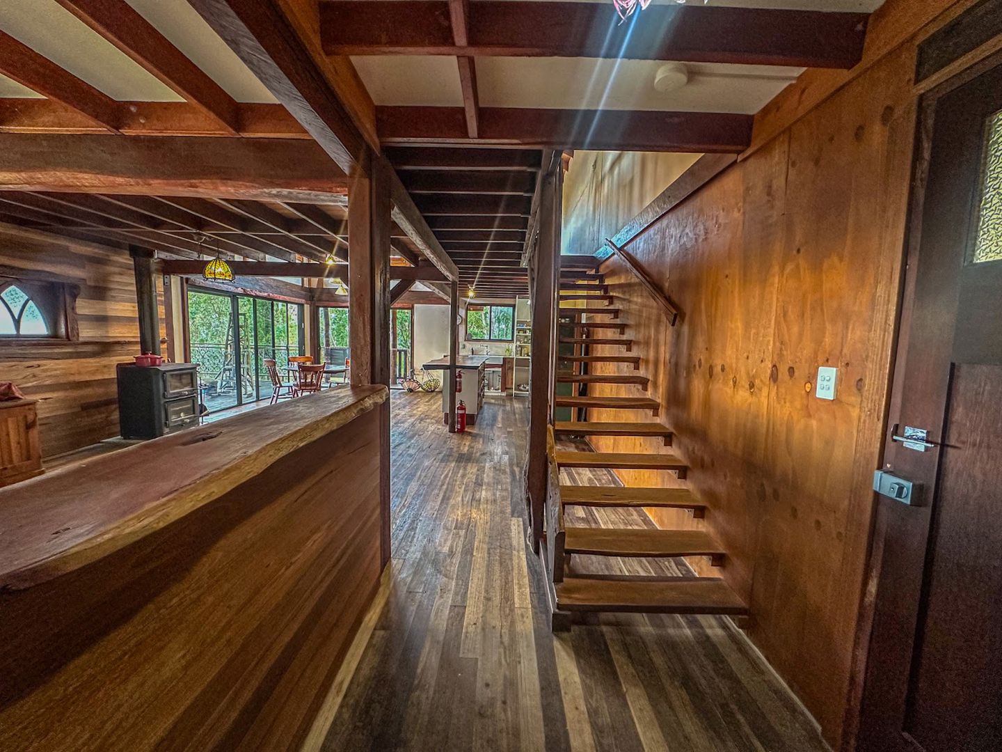 This exceptional property features three structures + a tractor shed, the main home is thoughtfully crafted residences, designed with self-sufficiency, comfort, and craftsmanship in mind. A beautifully built timber residence, was milled onsite using premium red gum and swamp mahogany. The result is a warm, character-filled sanctuary that blends seamlessly into its natural surroundings. Over-engineered for durability and performance, the home includes: