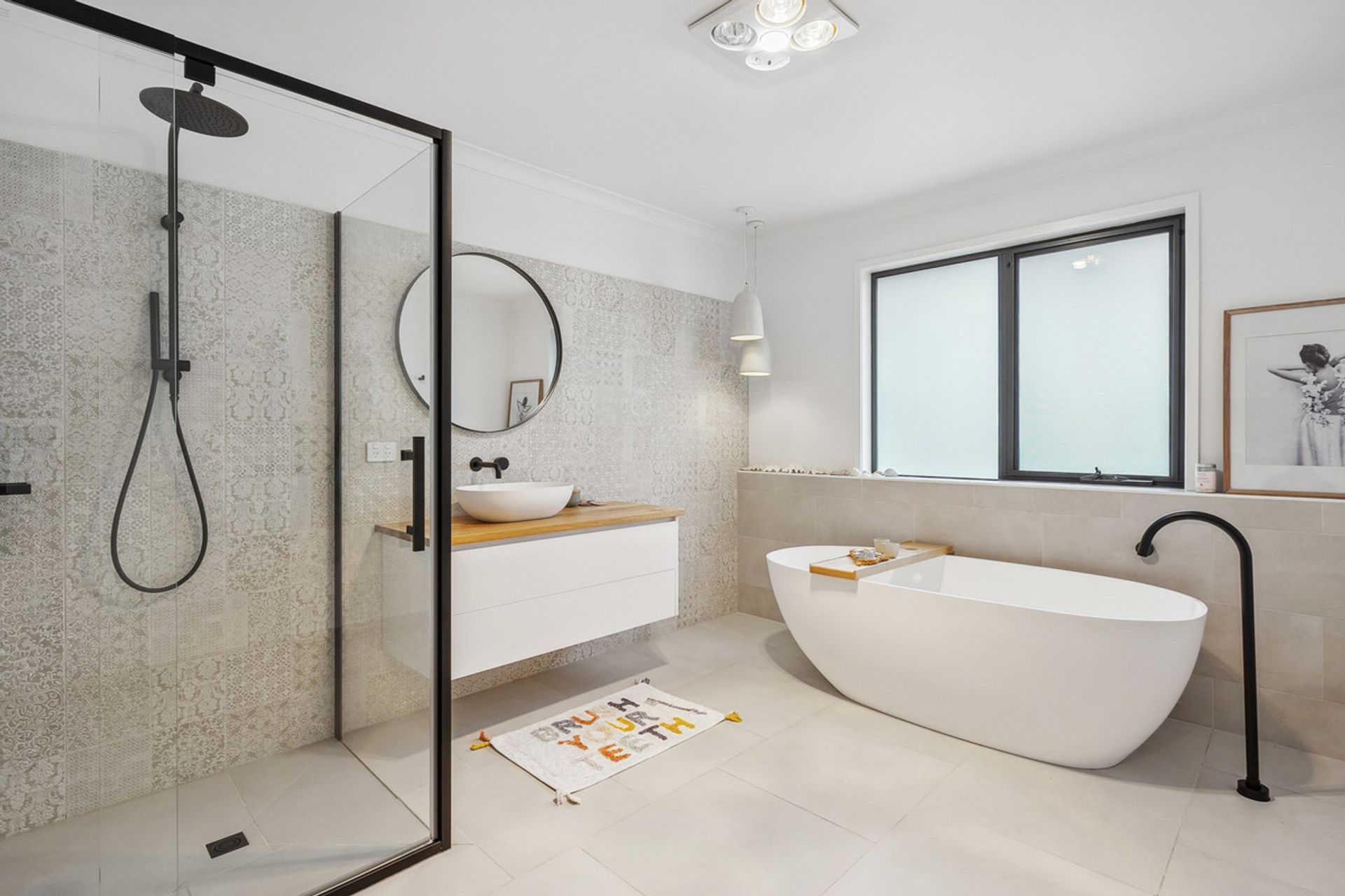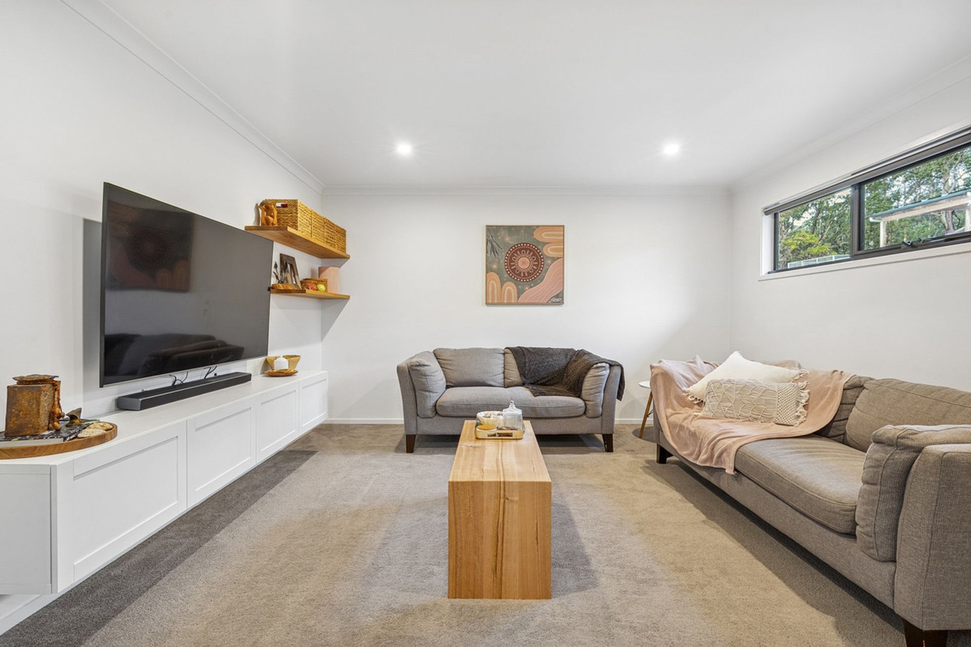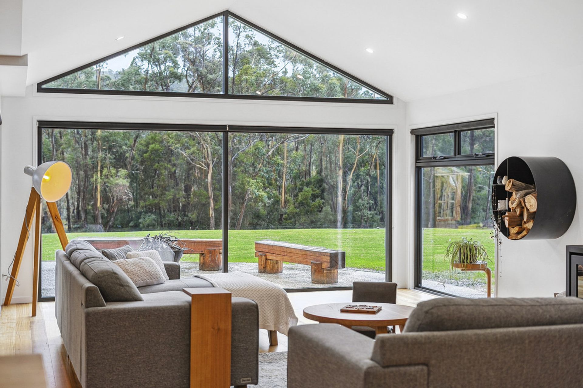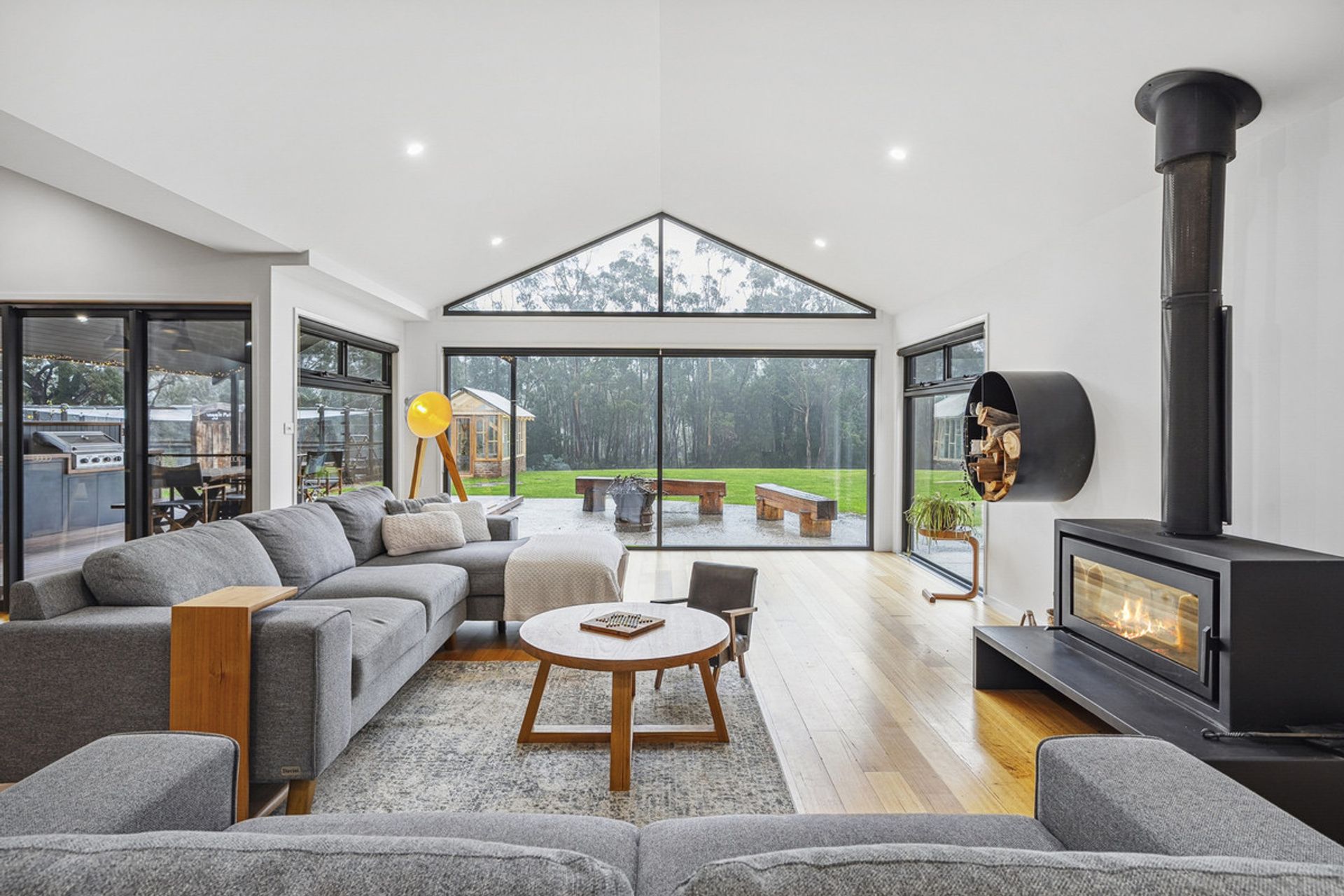 The heart of the home is a light-filled open-plan living space with soaring ceilings and large north-facing windows that capture the sun. The stunning timber benchtop in the kitchen adds warmth and character, complemented by a generous butler's pantry ideal for entertainers and home cooks alike.