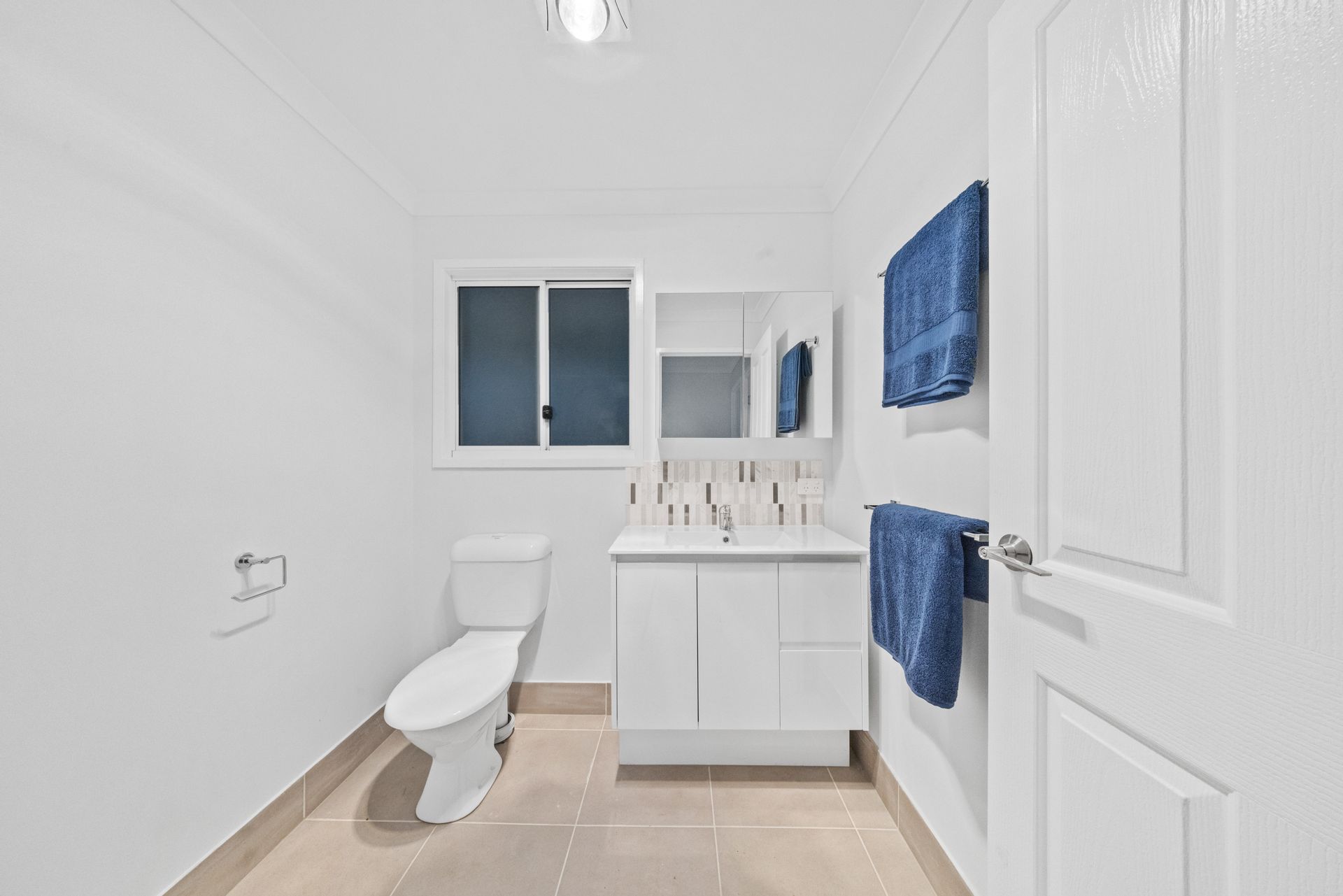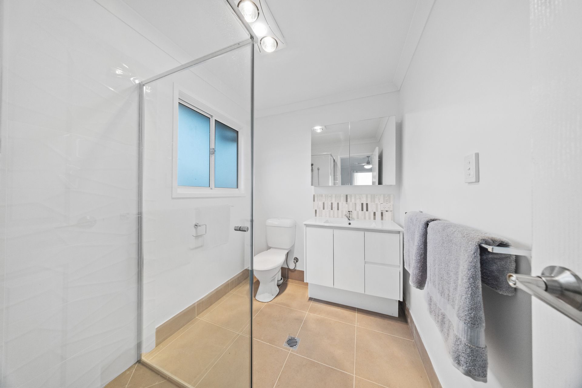 The newly constructed home features three generously sized bedrooms and two well-appointed bathrooms, with contemporary fittings and finishes throughout. The master suite enjoys a private ensuite, while all bedrooms are fitted with ceiling fans and built-in wardrobes, offering comfort and practicality in every room.