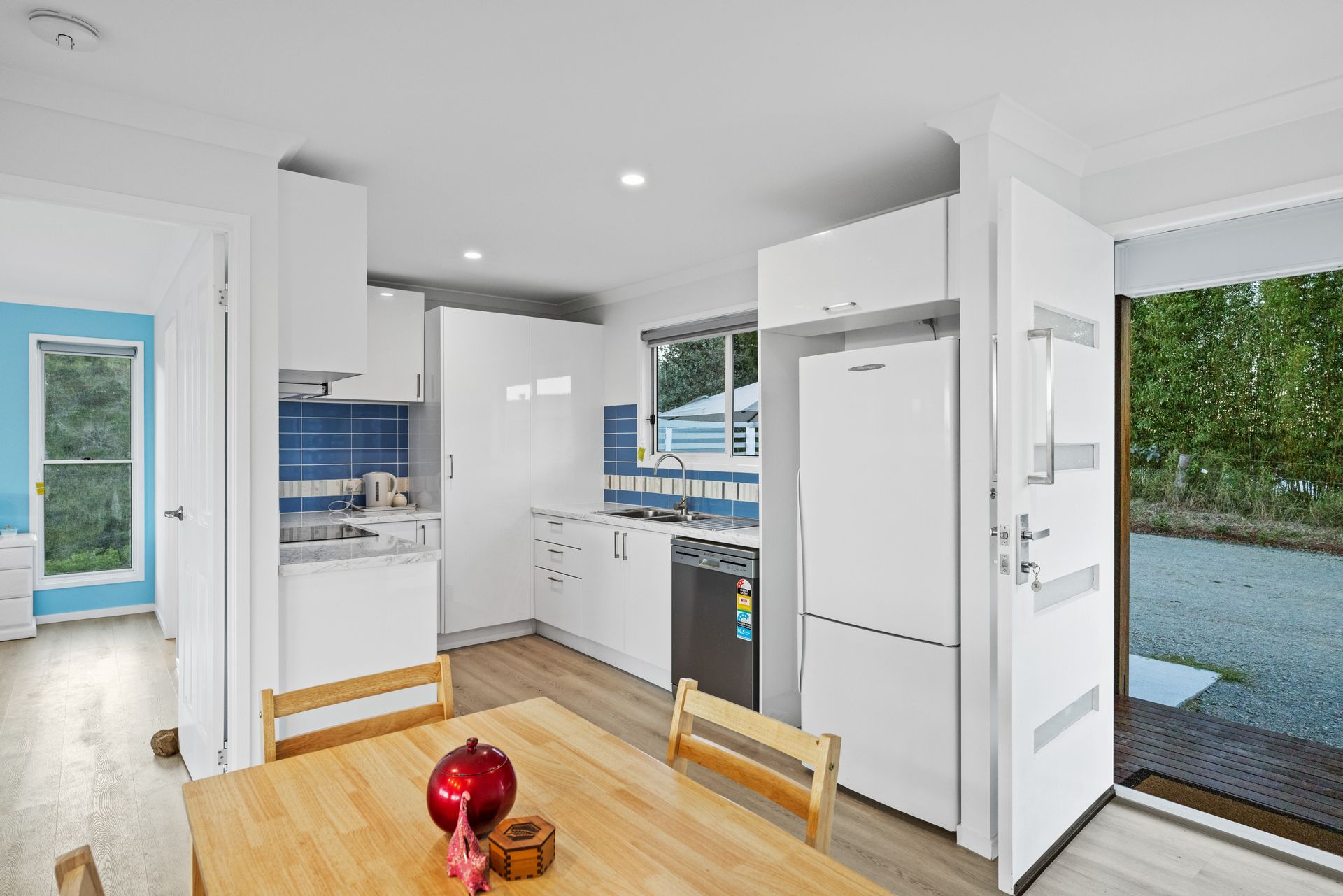 • Open-plan kitchen, living and dining layout