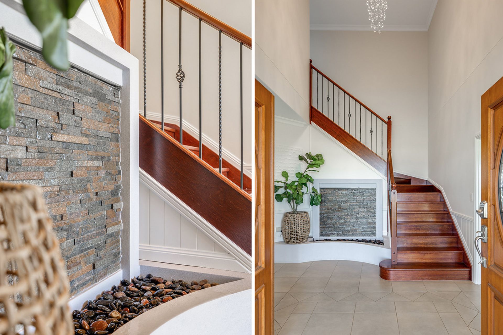• Grand 20 ft high entry way with stunning chandelier and cascading waterfall feature