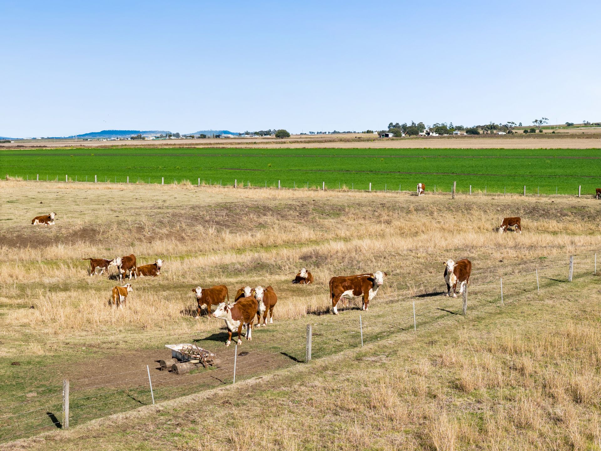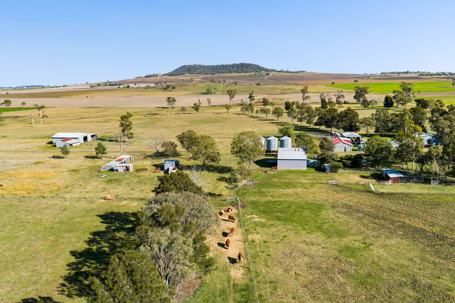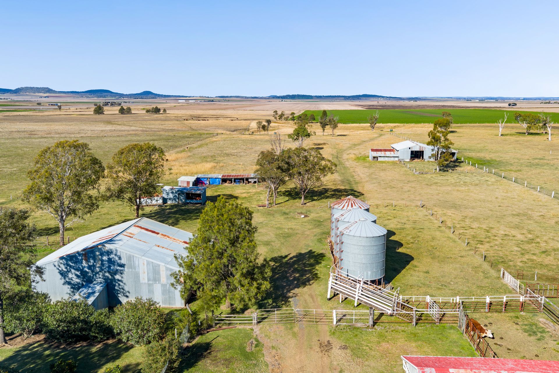 Country: "Karandah" is predominantly level to easy sloping, quality "Budgee" flats with top quality black self mulching clay soils. Approximately 70 acres is cultivated with 60 acres of oats crop and 10 acres of forage sorghum. Approximately 200 acres (80 hectares) was originally farmed, now back to natural and improved pastures.