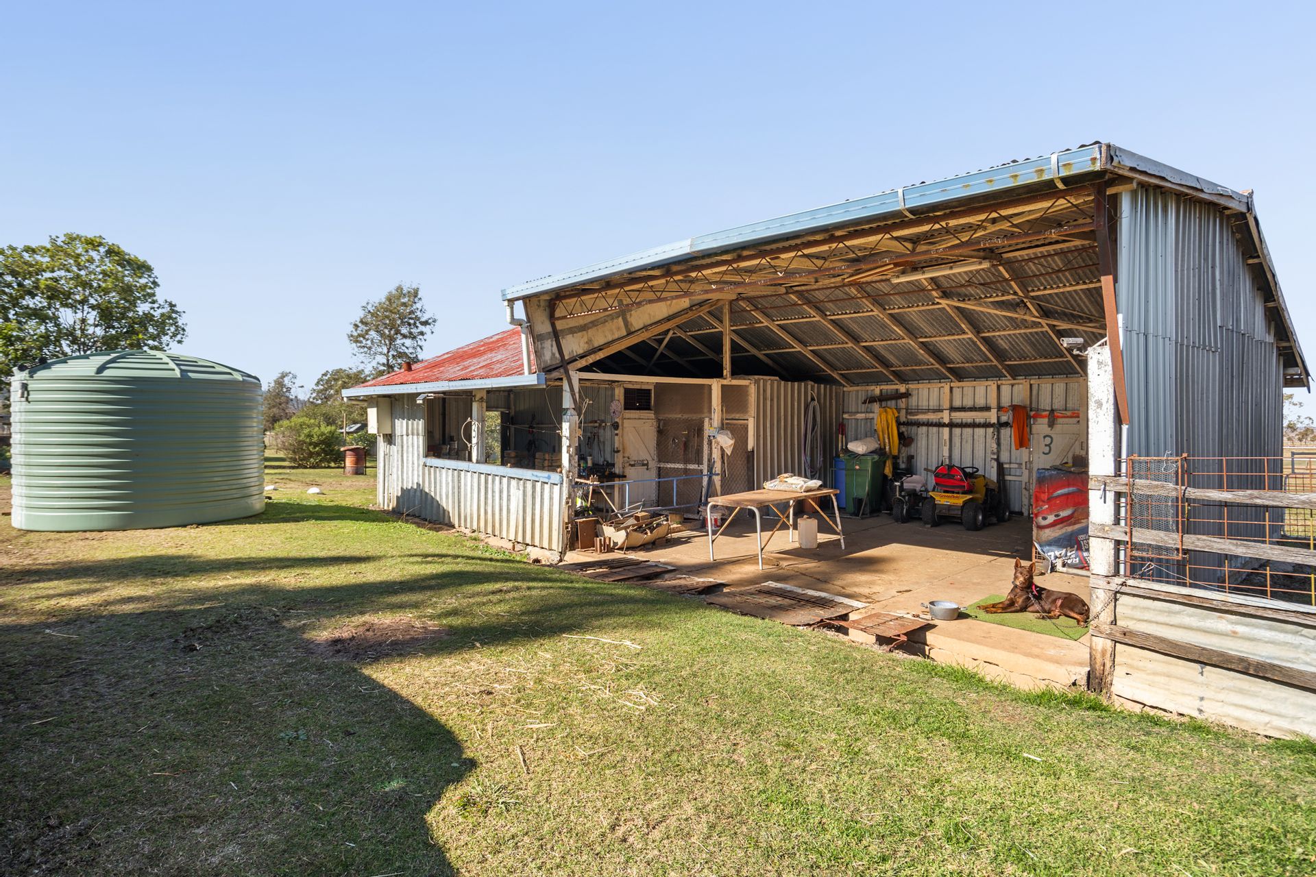 Outside there are 2 x 3,000 gallon, 1 x 5,000 gallon and 1 x 2,000 gallon poly tanks (all interconnected to the pressure pump). The house yard is fenced and there are established garden shrubs and a mini golf course.