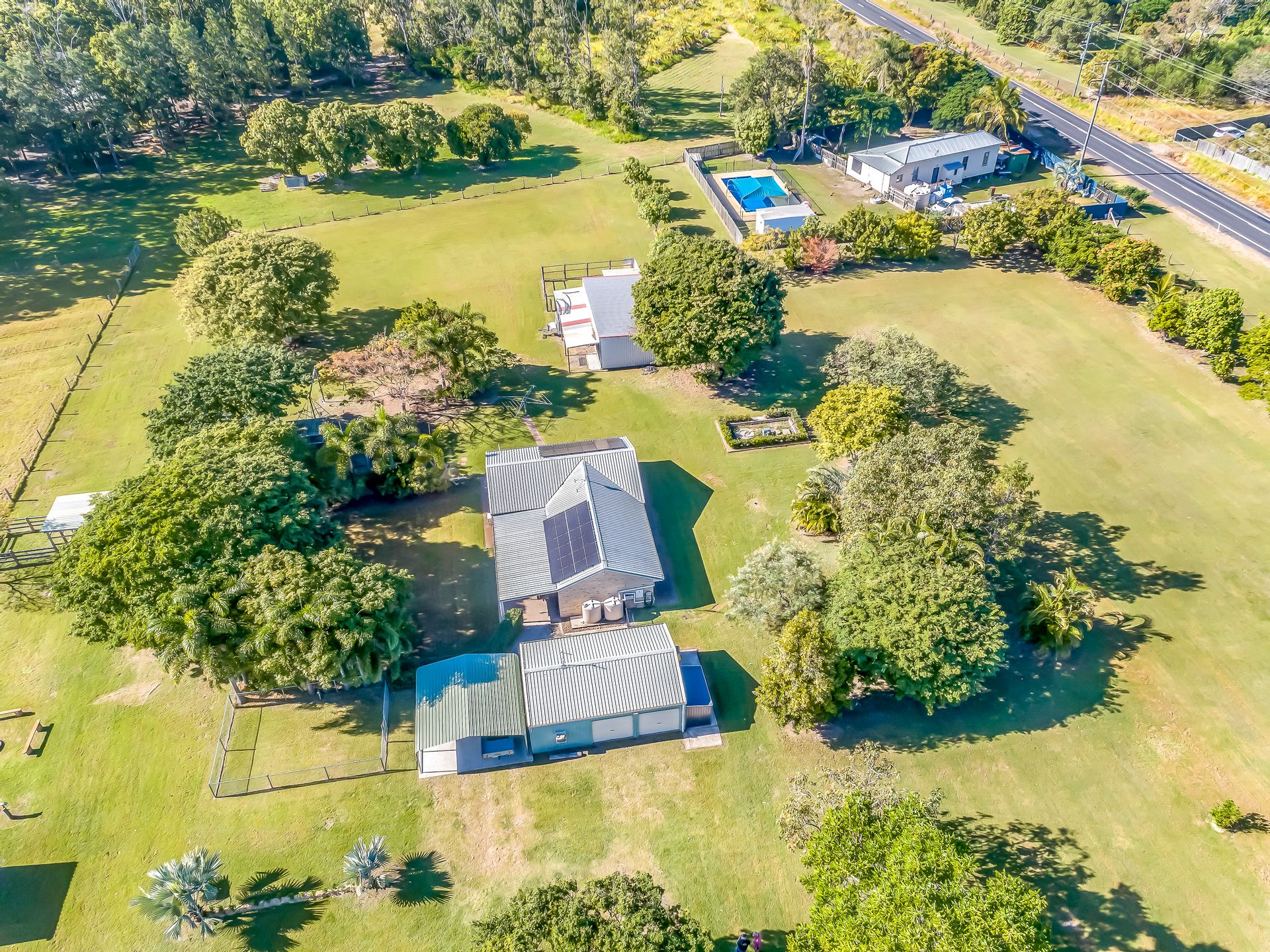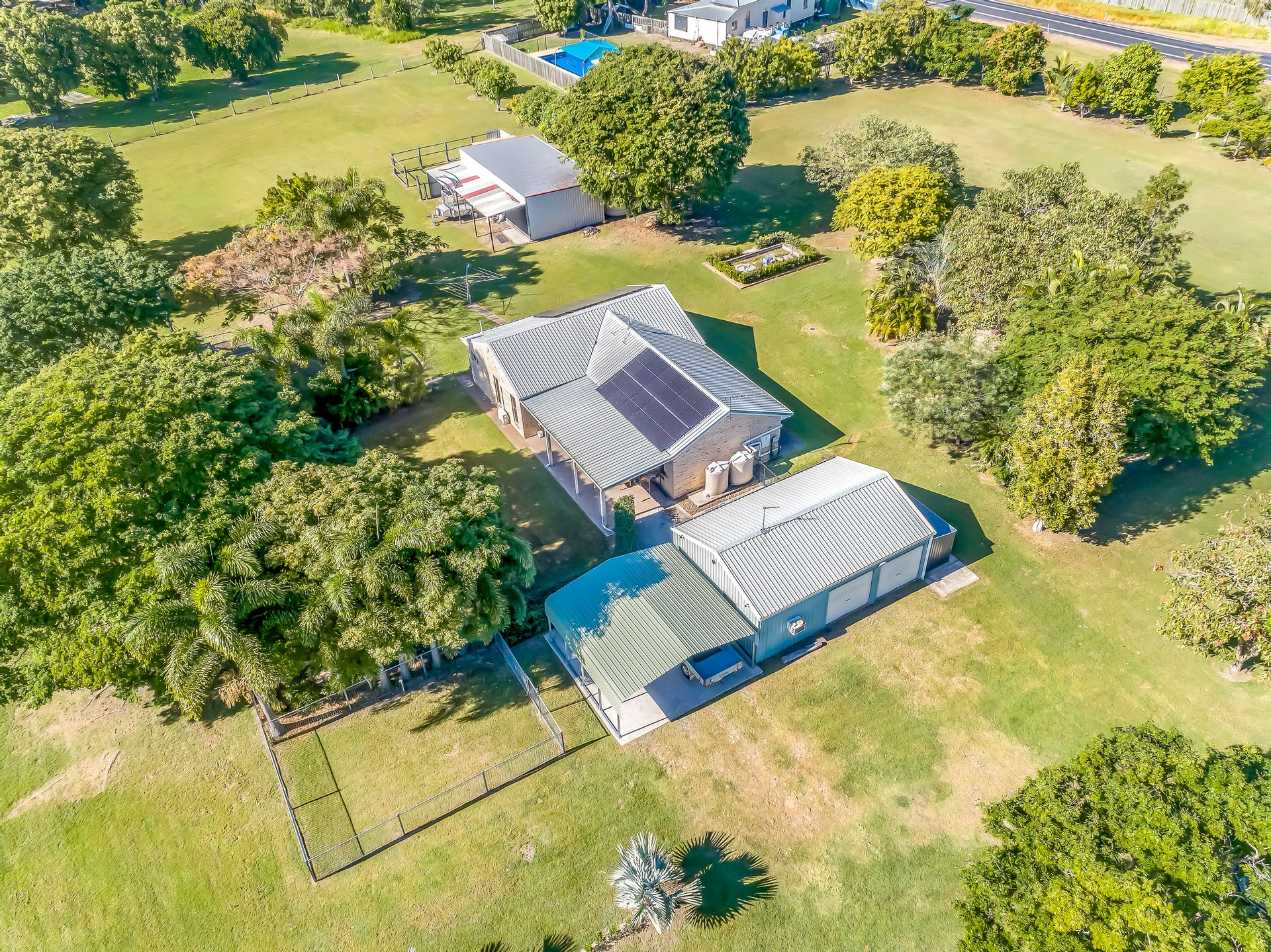 Beyond the house yard, approximately 4-5 acres are securely dog-proof fenced and host various fruit trees including mango, mandarin, lime, lemon, and apple. This space is ideal for self-sufficiency or simply enjoying homegrown produce in your backyard.