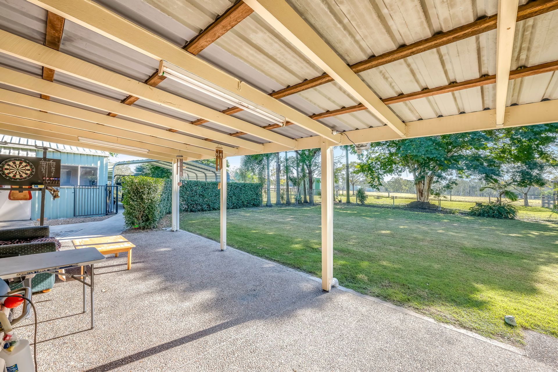 • Double carport and fenced pool area with power connected