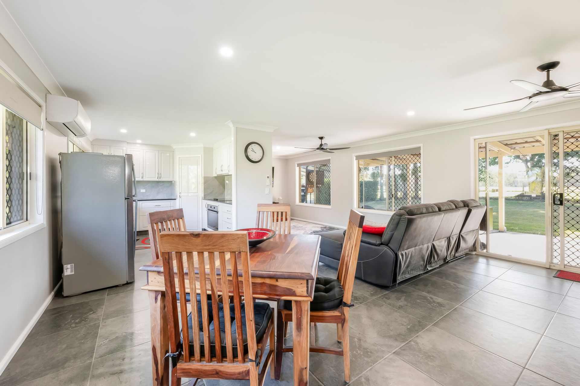 The fully renovated lowset brick residence is positioned on a generous, fully fenced yard, offering effortless, contemporary living. The home comprises three spacious bedrooms with built-in wardrobes, including a primary suite complete with a private ensuite. A second well-appointed bathroom, including a bath serves the remaining bedrooms. The residence boasts a brand-new kitchen equipped with all new modern appliances, new bathrooms, and new flooring throughout and split system air conditioning in all bedrooms to ensure comfort throughout the year, additionally there are ceiling fans in the main living areas. The entire home is tiled and enhanced by an 8.8 kW solar system with 24 panels, alongside comprehensive security screening. Notably, the property benefits from connection to town water-a rare and highly sought-after convenience in this rural setting.