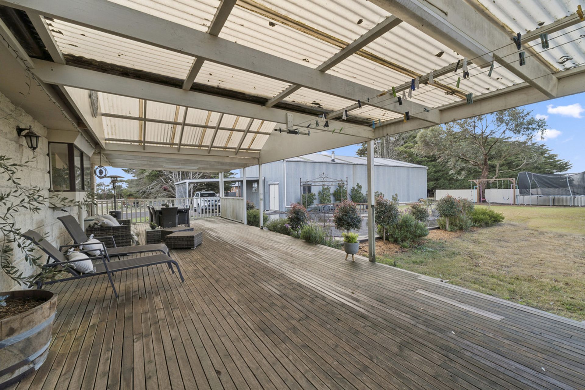 Outside, the lifestyle continues. Enjoy well-maintained lawns, an undercover entertaining area which overlooks the backyard, meaning keeping an eye on the kids while they play is easy. A fully fenced front paddock and side paddock complete with horse day box is perfect for horses or young stock, and there's ample space for the boat, caravan, bikes or toys in the huge 12 m x 30 m shed (concrete floor, lock-up, power connected) plus an undercover 2 car, carport