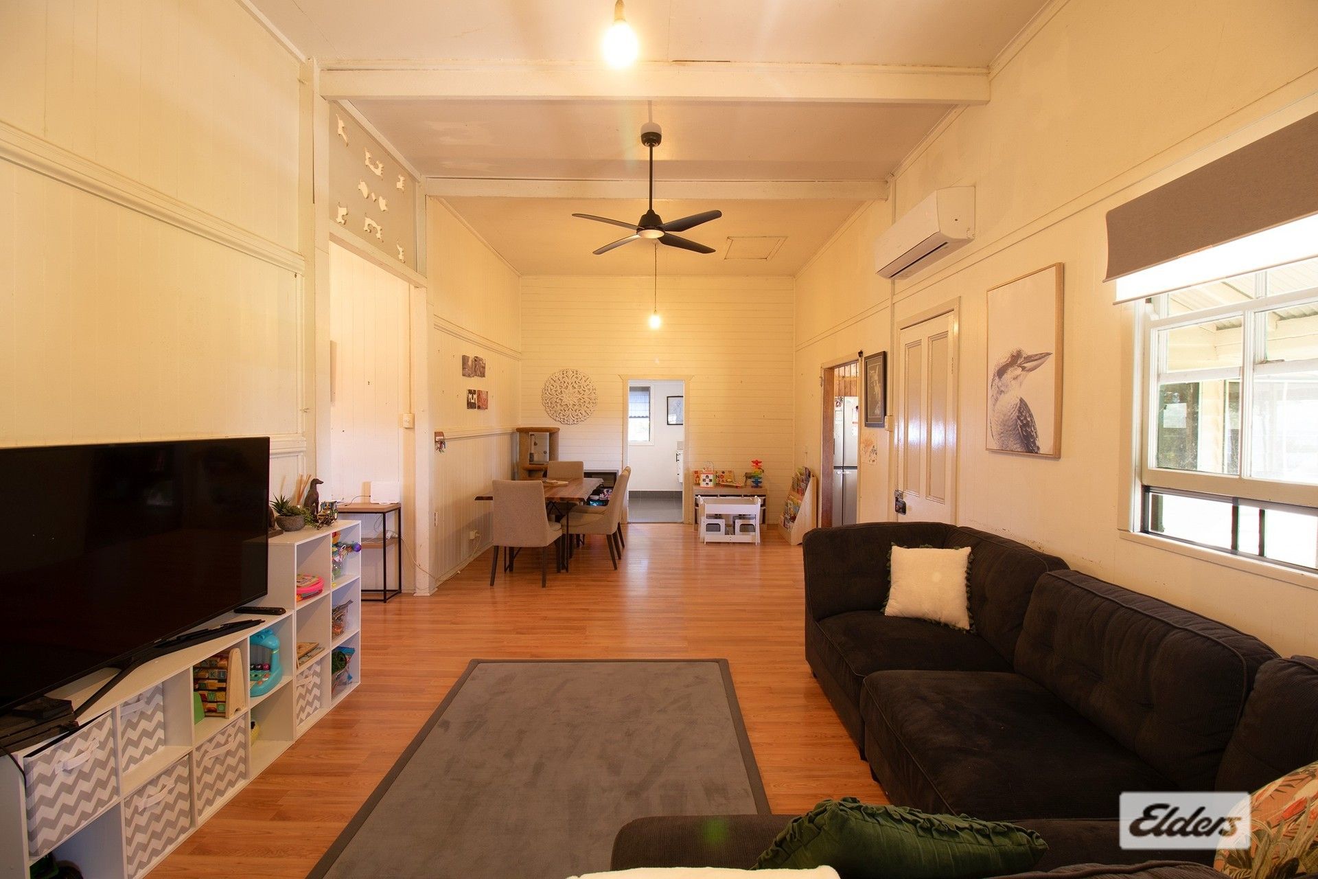 The heart of the home is an unexpectedly spacious open-plan living area where your family can gather in comfort year-round, complete with a cozy wood fire heater & air conditioning.