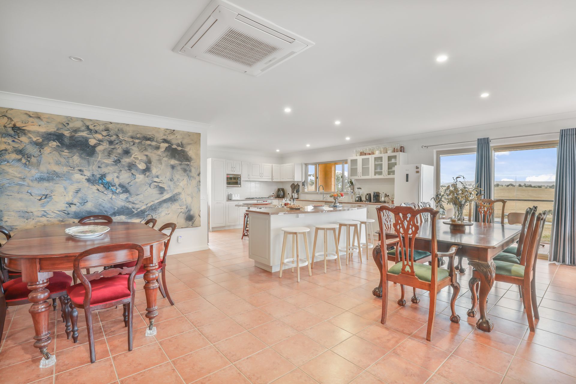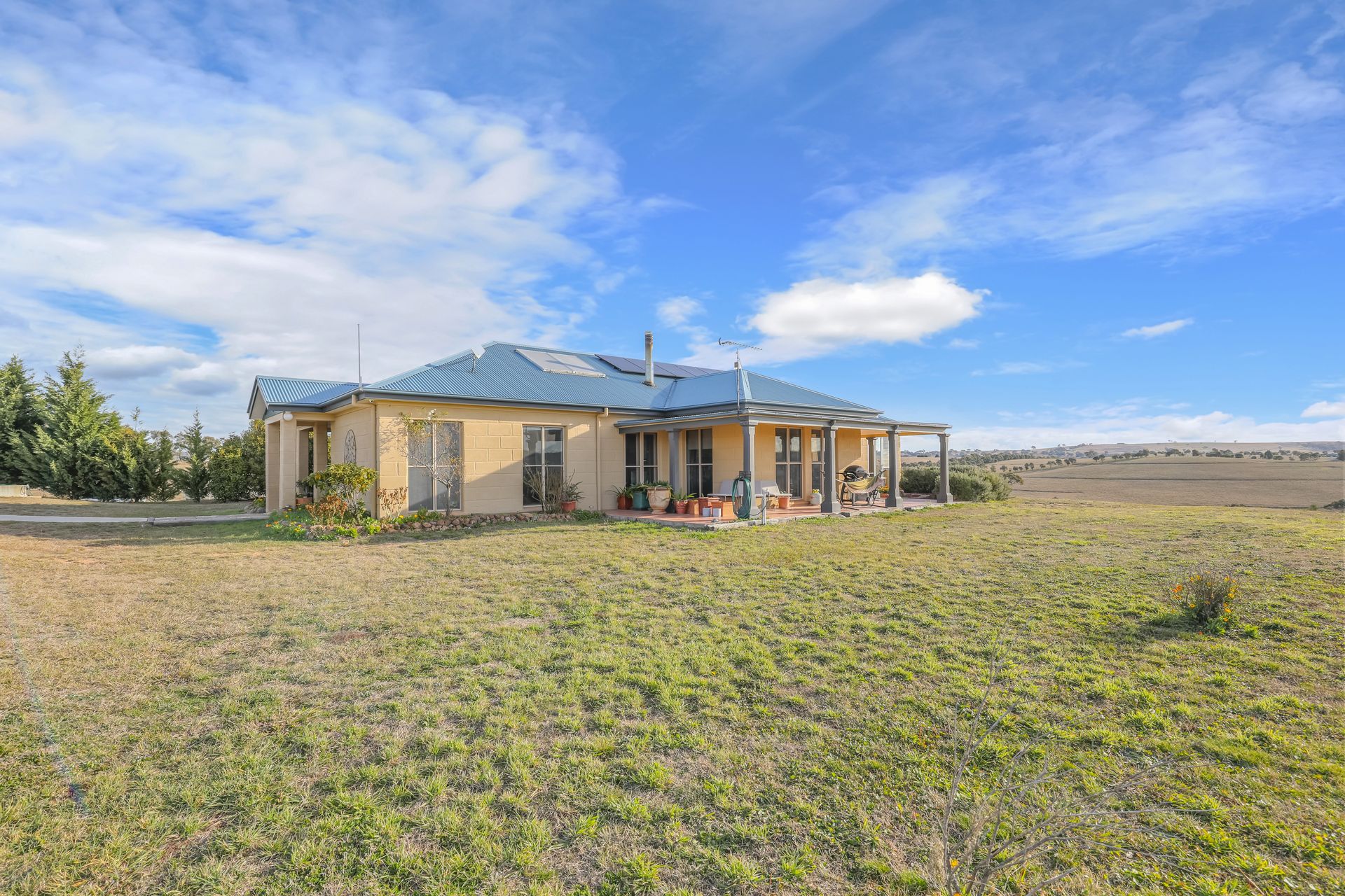 Tucked away down a private battle-axe driveway, this exceptional rammed earth home offers a rare blend of comfort, character and flexibility. With breathtaking 360° views of rolling hills, dams and countryside, this is the ultimate 30.4*acre of freehold torrens title with a further access to 60* acres of shared land - ideal for families, entertainers, hobbyists or those seeking dual or multi-generational living. Every detail has been considered, from energy efficiency to expansive indoor and outdoor spaces.