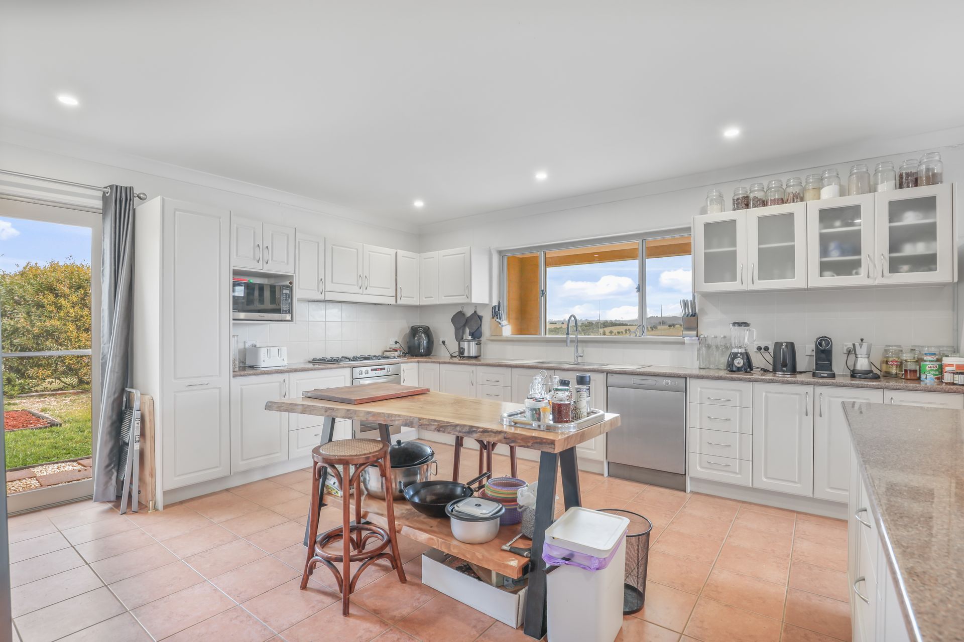 • Stylish kitchen with stone laminex benchtops, island bench, gas cooking and ample storage