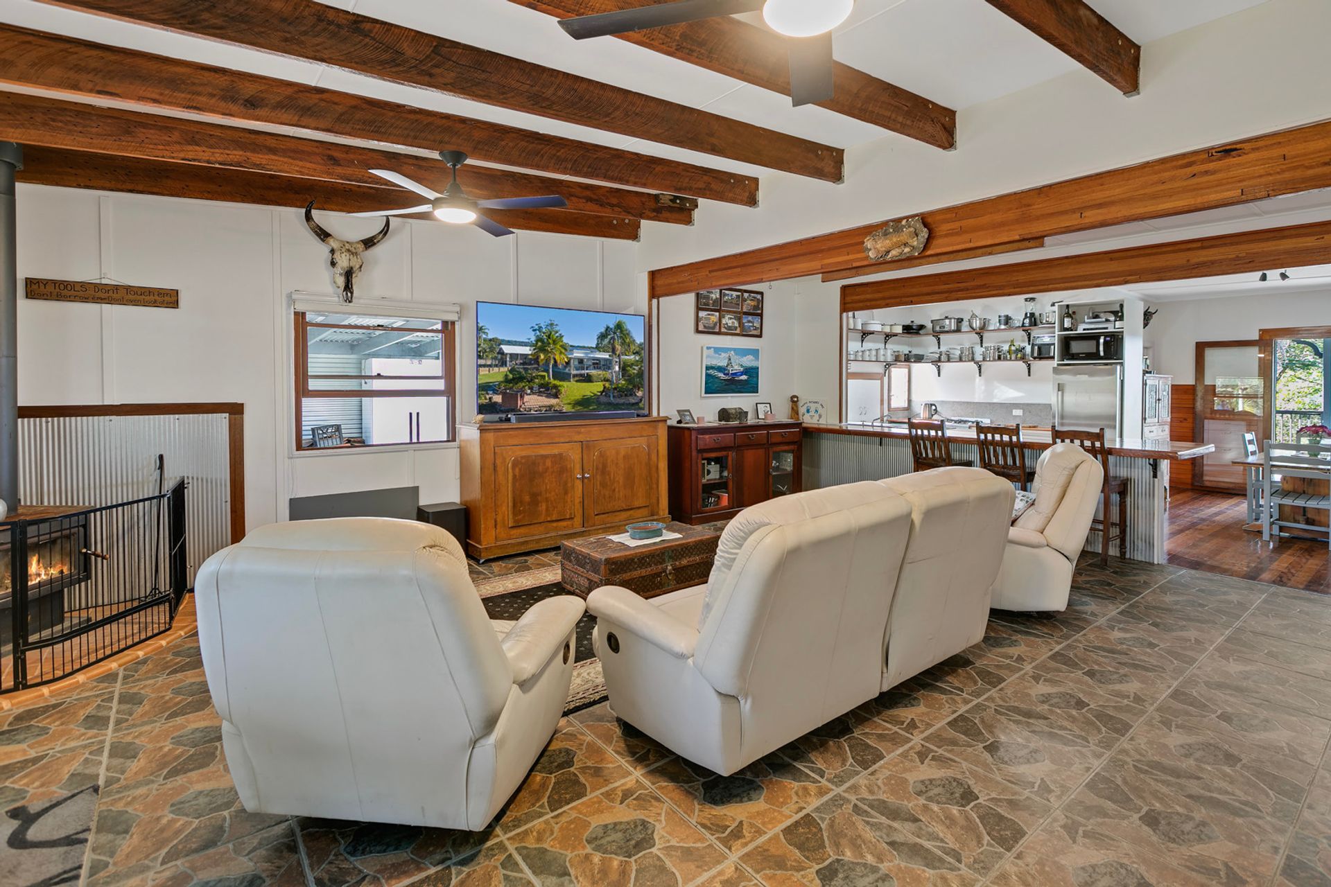There are delightful established gardens around the home with native and tropical vegetation, a variety of fruit trees for fresh produce, a firepit area, masses of grassy space for children and pets to play, and 3 x dams. The land is fully useable and could suit hobby farming, horse and cattle grazing, and other micro-agricultural purposes. There is so much to love everywhere you look!