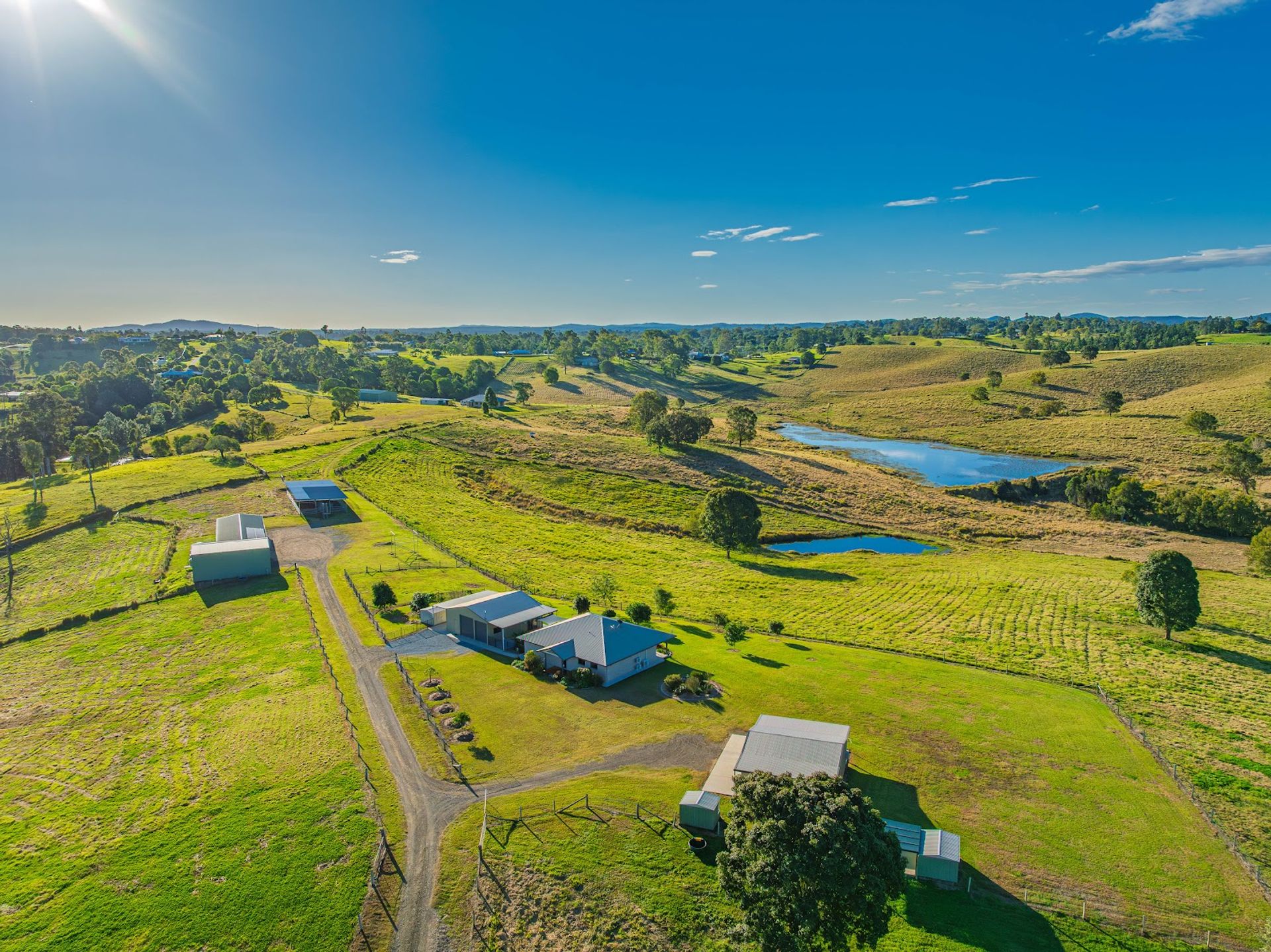 You’re fully covered with 3 dams, Boundary Creek stock/domestic access, and 4 x 22,000L rainwater tanks. Water is reticulated to troughs across all 10 paddocks, house and yards via a header tank.