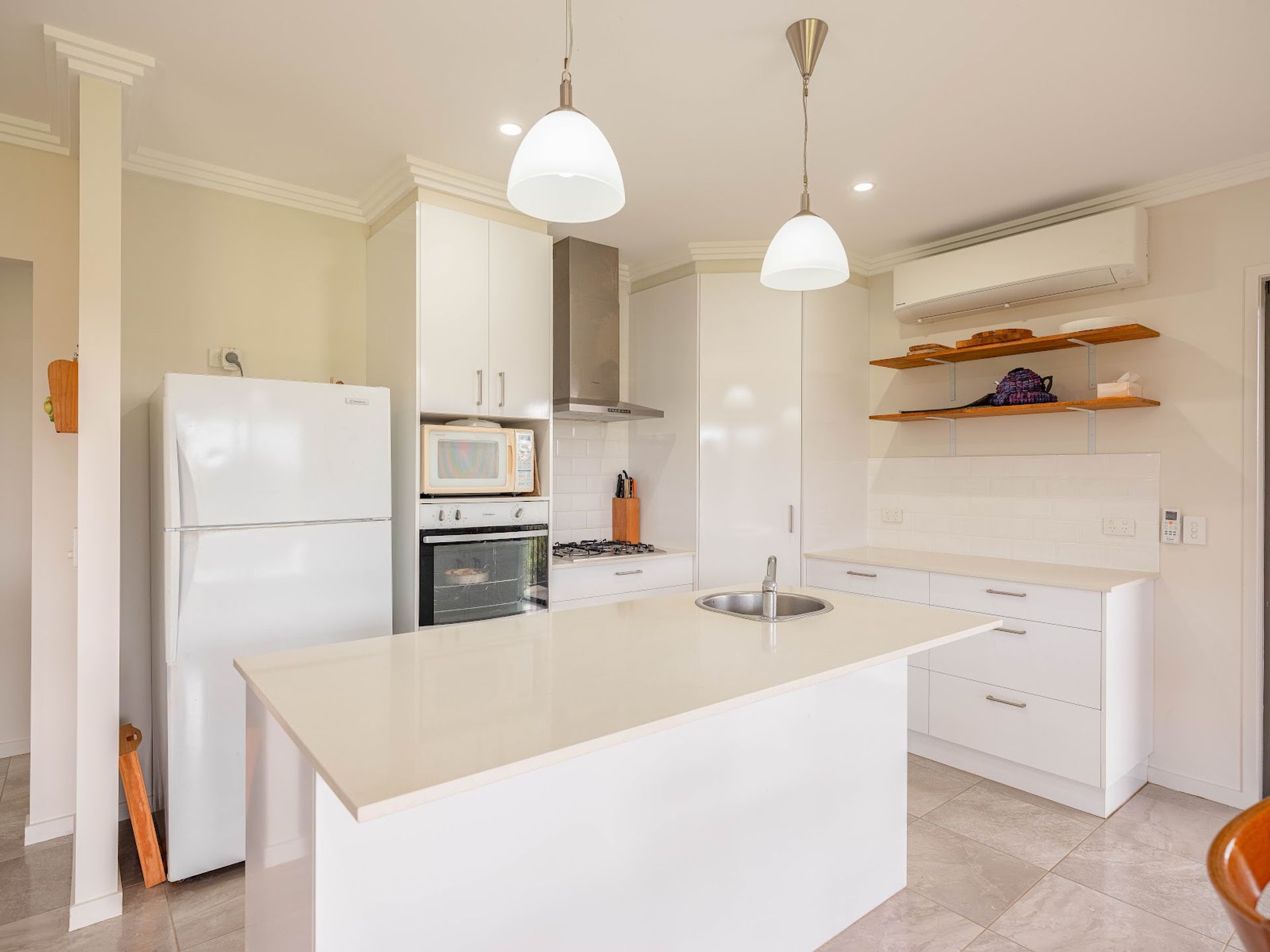 Built in 2018, this comfortable, north-east facing 2-bedroom home features open-plan living, full length verandahs front and back, modern kitchen and bathroom, air conditioning, fireplace, and is powered by a 6.5kW solar system with 24-battery cell storage. Totally off-grid and self-sufficient!
