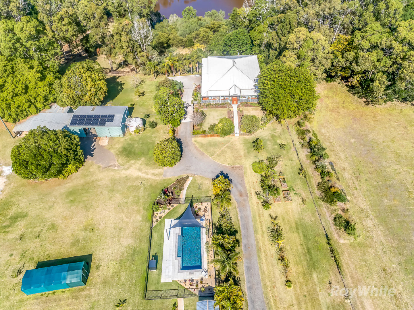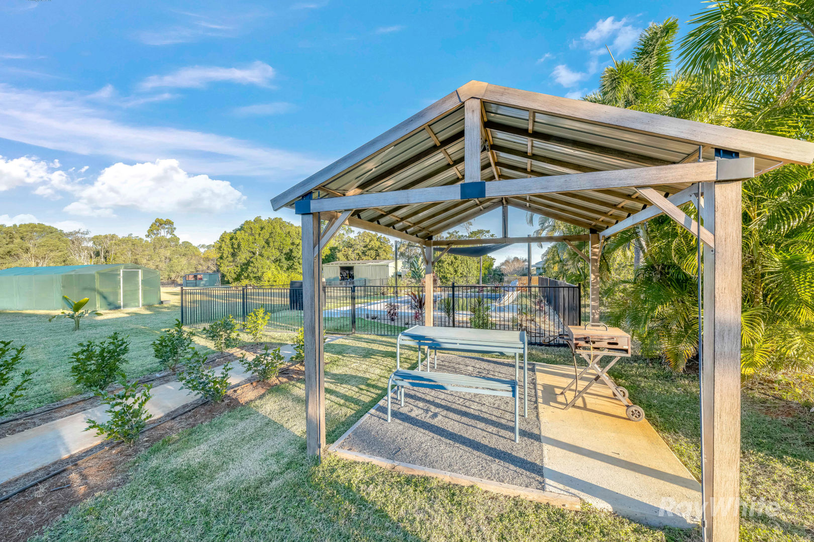 Outside, your country lifestyle is fully catered for: a sparkling saltwater pool, 4-bay high-clearance shed with bathroom facilities, 8-bay machinery shed, chicken house, greenhouse, and fertile paddocks perfect for horses or hobby farming. Water security is ensured with three bores, a massive dam, multiple rainwater tanks and a 50mm manifold irrigation system feeding your orchards and extensive vegetable gardens brimming with mangoes, limes, avocados, bananas, dragon fruit and more.