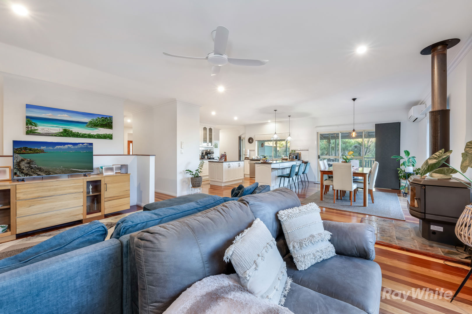 - Airconditioned Kitchen, Dining & Family Room with Wood Heater