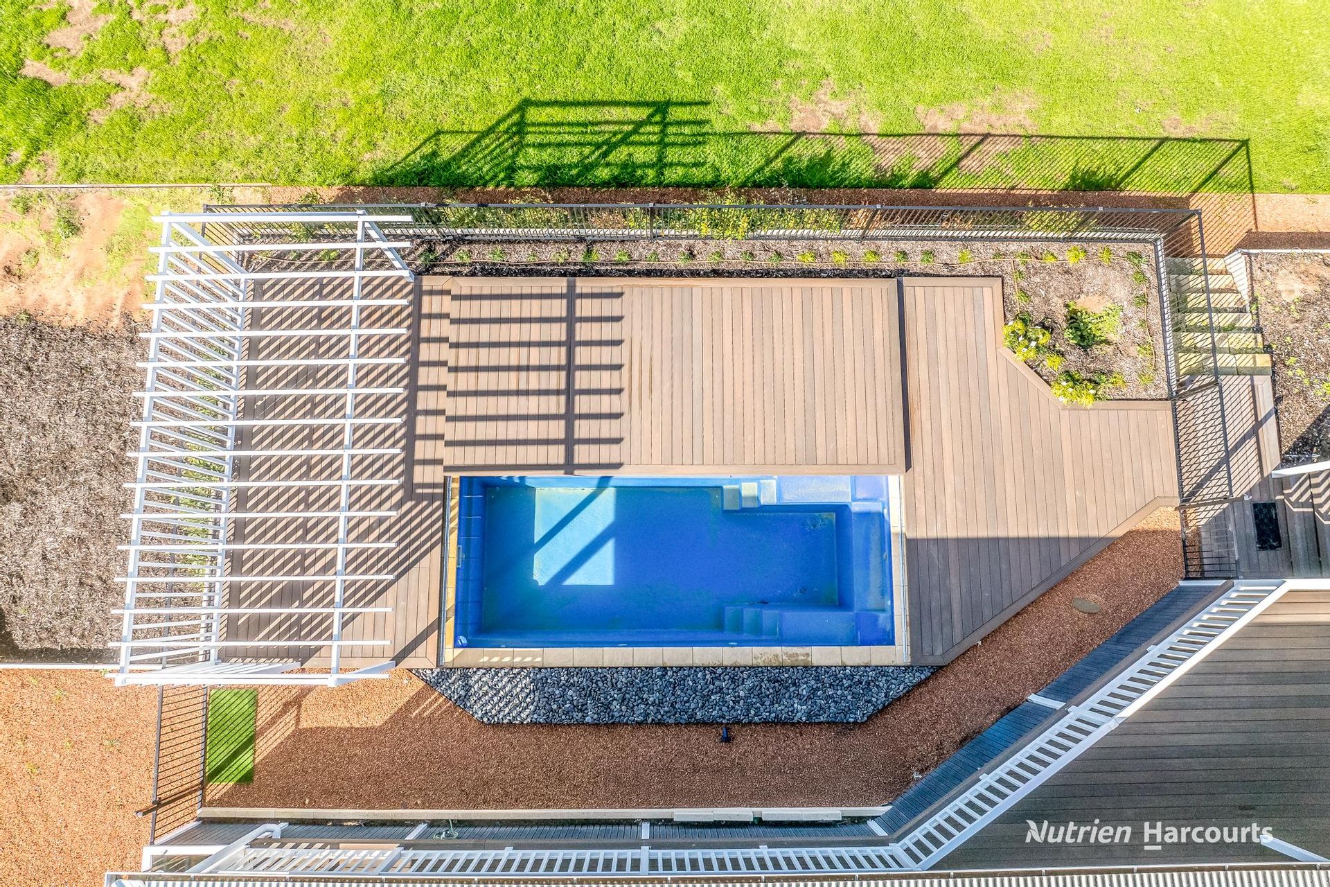 • 18m2 Fiberglass pool with decking and sliding deck pool cover