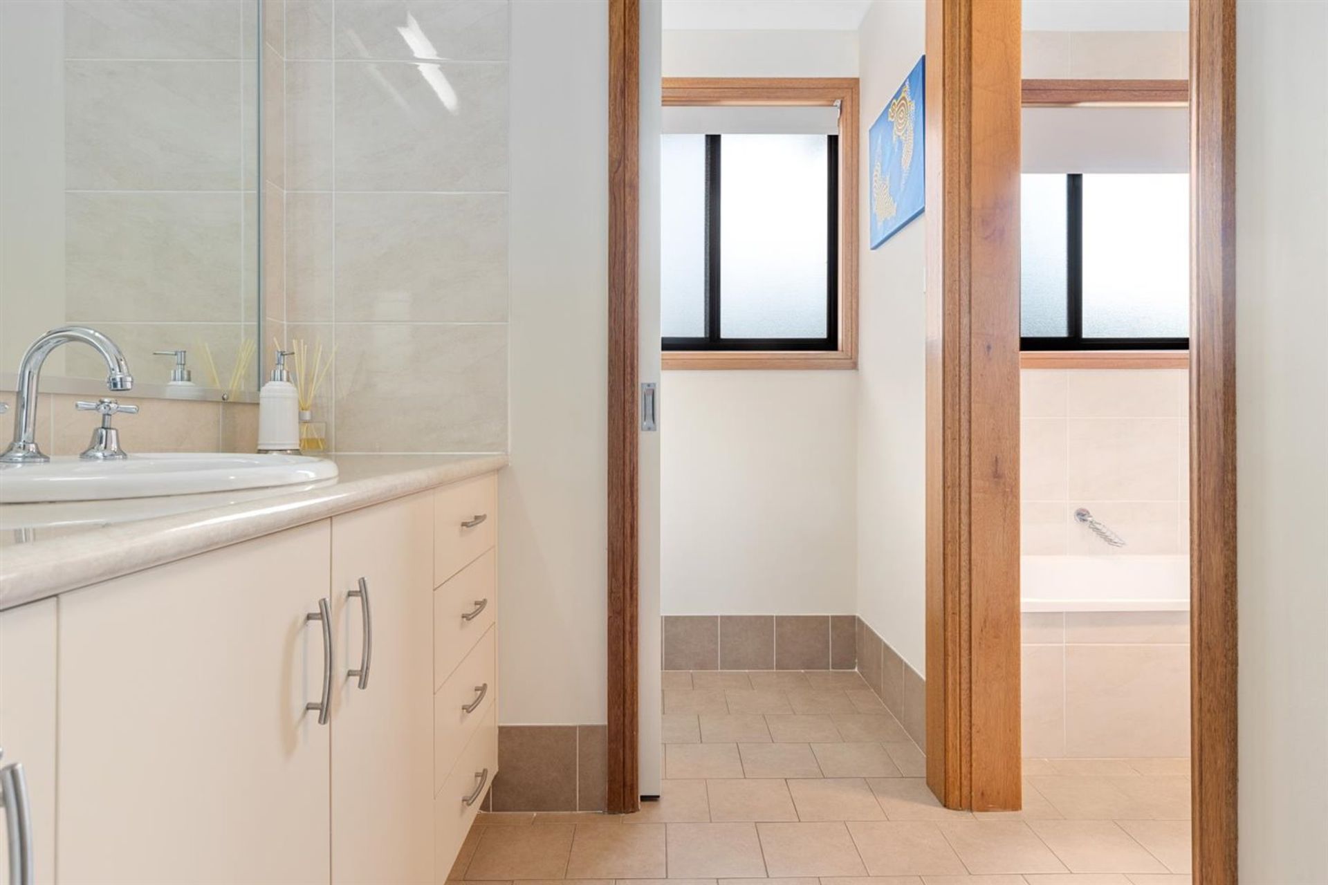 The kitchen is a chef's dream, featuring ample storage space, and a functional layout. The open-plan design seamlessly connects the kitchen to the dining and living areas, creating a warm and inviting atmosphere for family gatherings or entertaining friends.