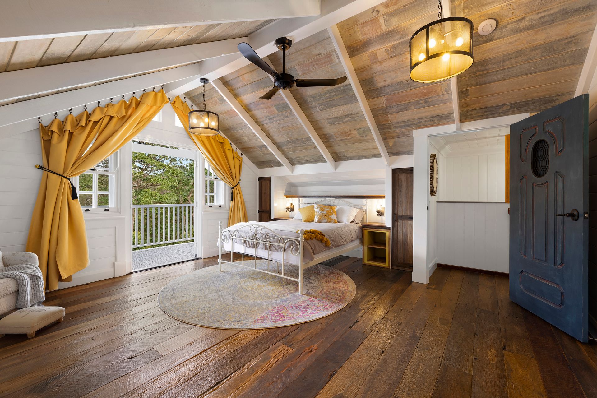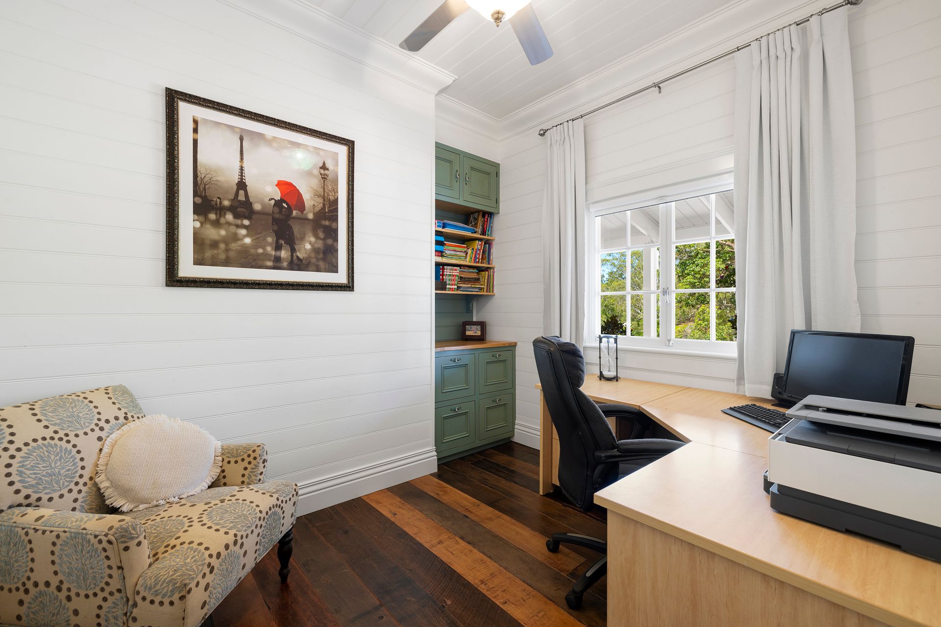 Three of the home's four bedrooms are located on the main level and all feature air conditioning, large robes and the master bedroom offers French door verandah access a large walk-in wardrobe and stunning ensuite. A fourth (and absolutely fabulous!) bedroom is located in a private attic wing with it's own bathroom. The dreamy 5.48mx5.00m retreat has an ensuite and the a storybook gabled walkout balcony that Juliet and Rapunzel would covet!
