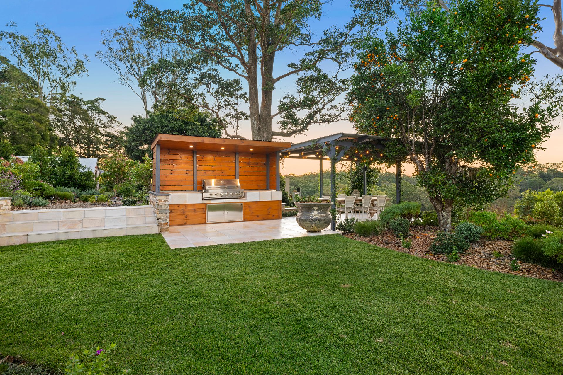 • Pergola with 6 burner BBQ + Mediterranean courtyard