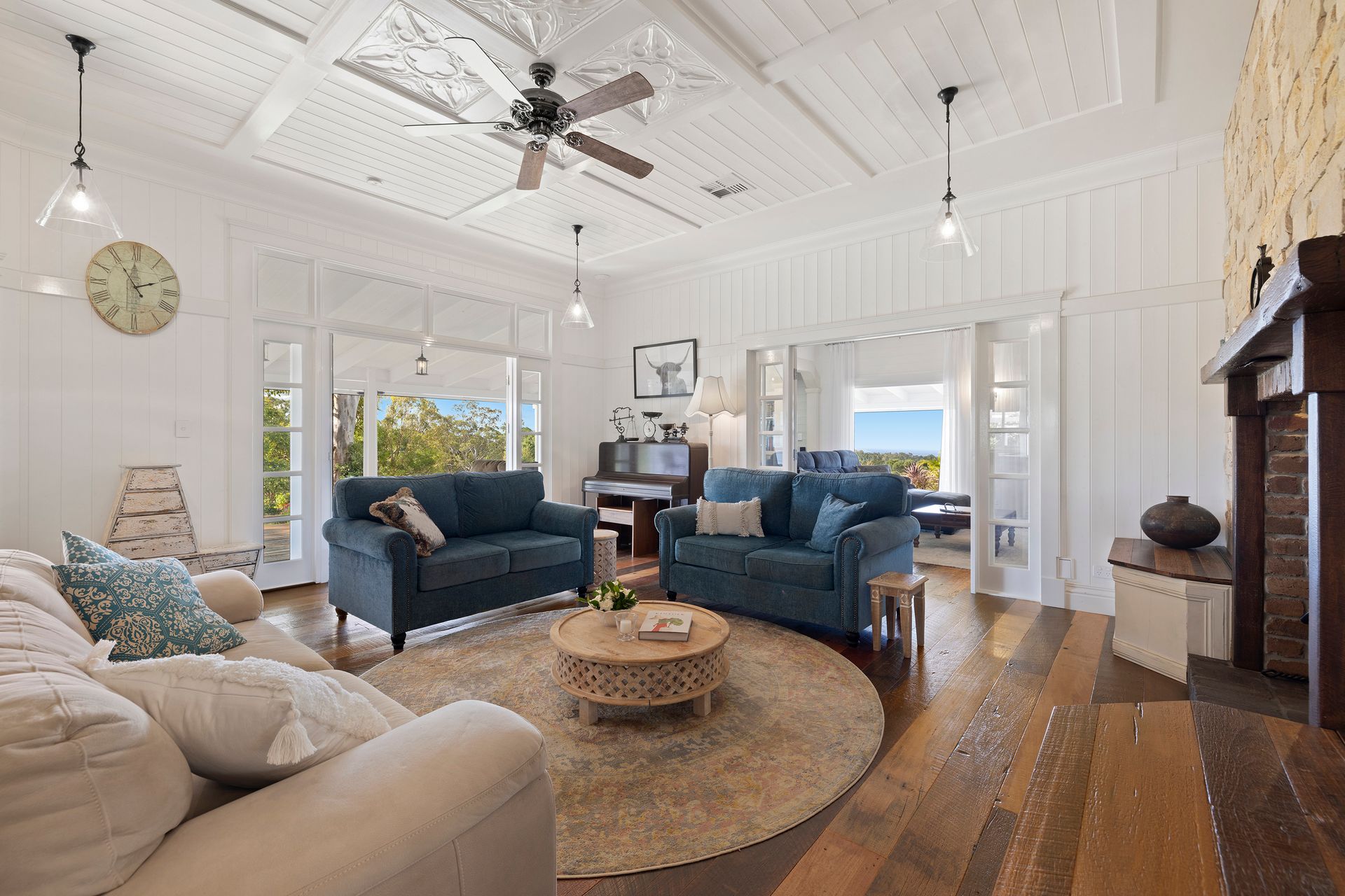 When you walk through Lorelei Manor's oversized double entry doors, you are immediately struck by the impressive foyer, soaring coffered ceilings, recycled hardwood walnut floorboards, VJ panelling, Victorian cornicing & endless views.