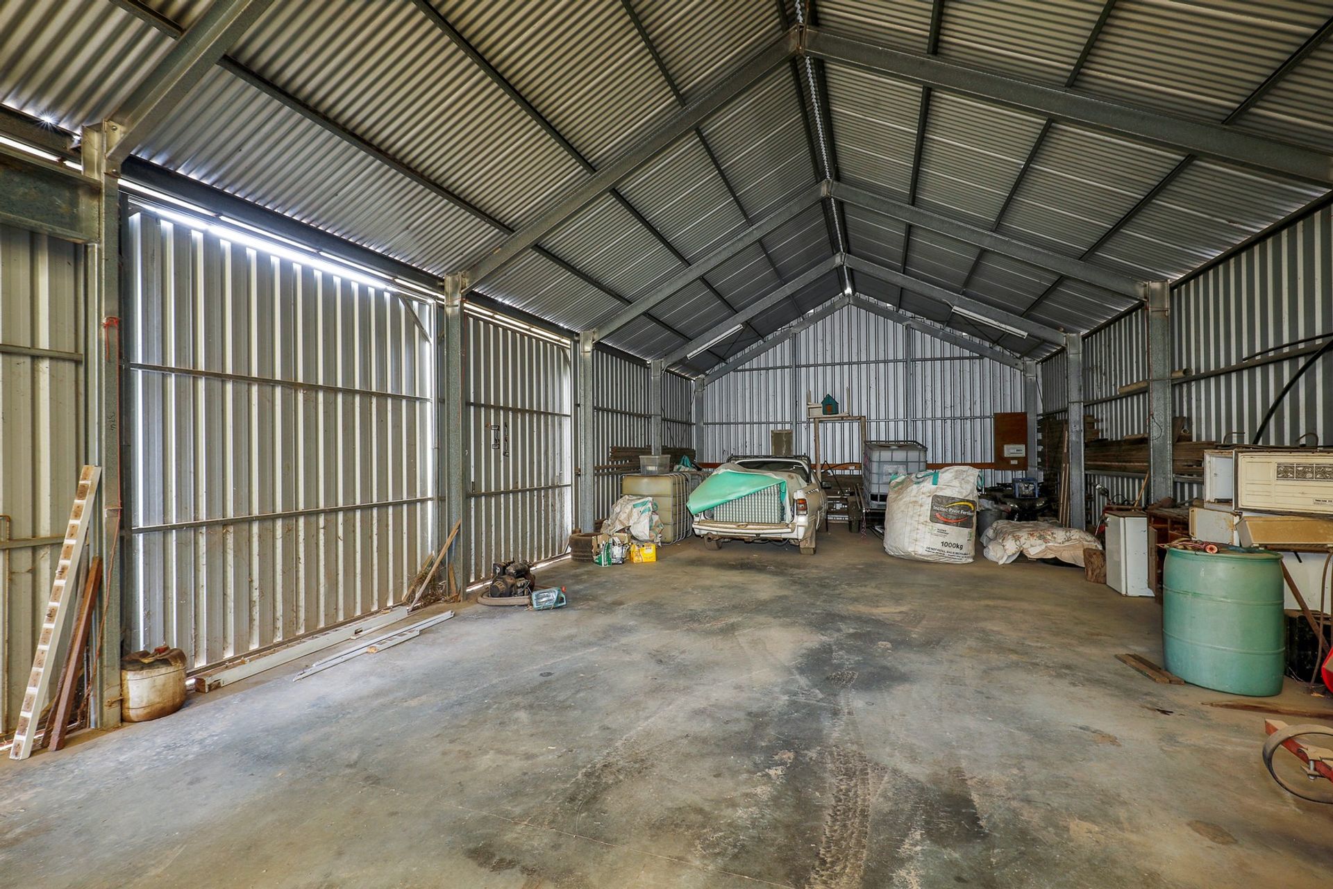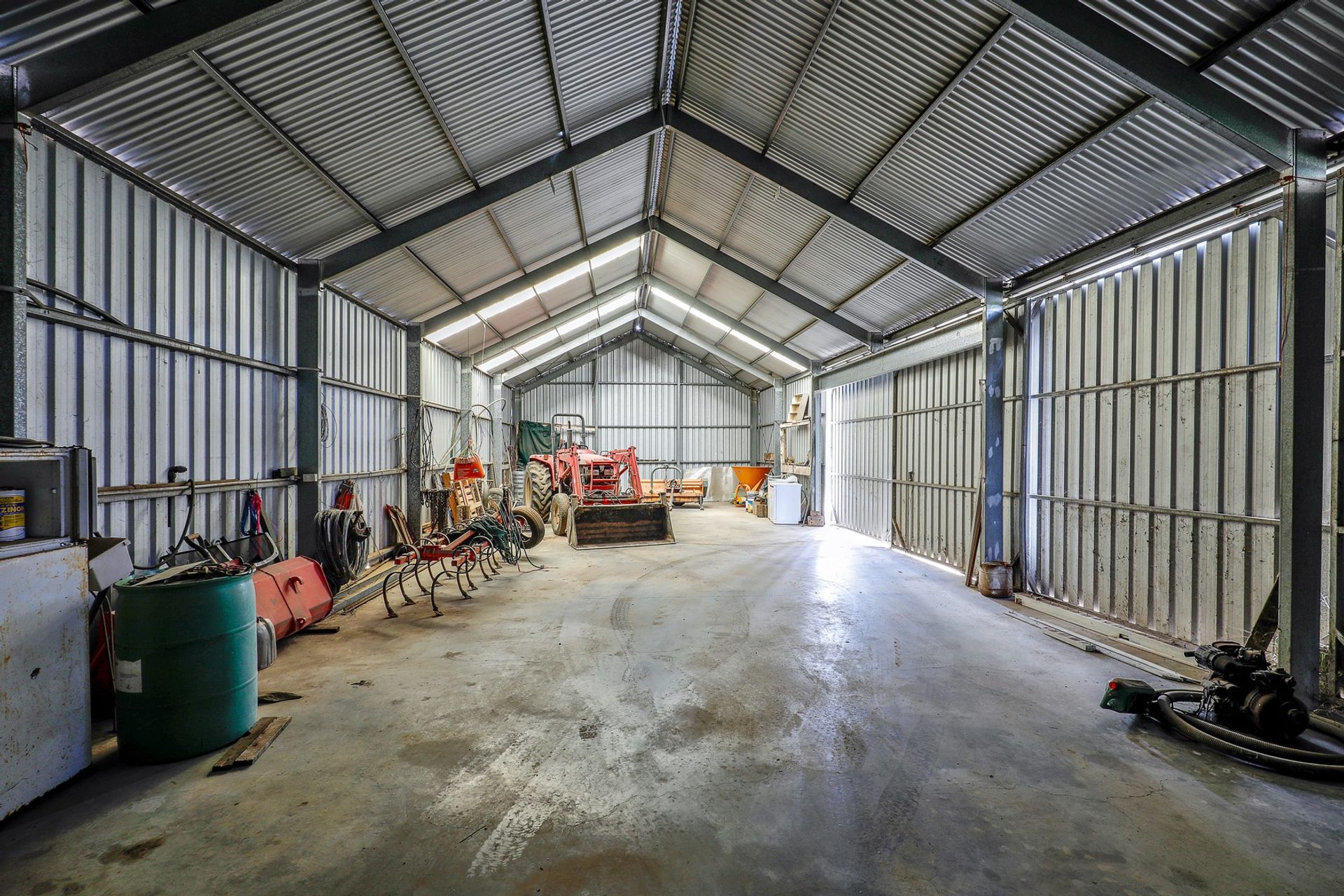 • Massive powered machinery shed (approx. 24.5m long x 7.9m wide with 3.6m high doors) - perfect for storing equipment, tools, or even converting part into a workshop.