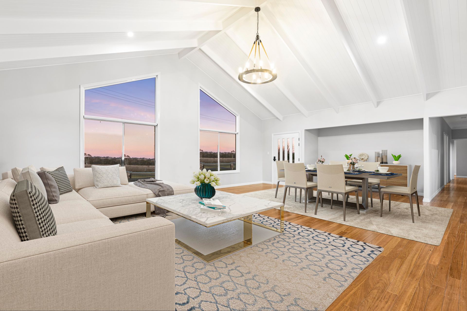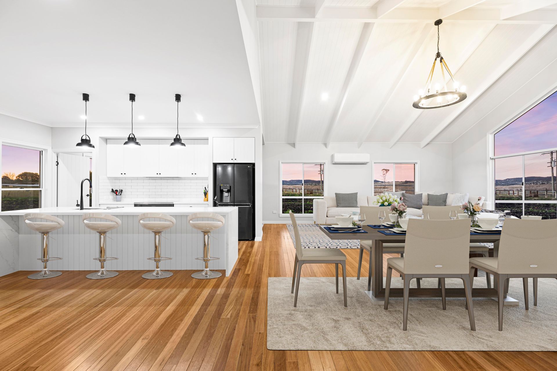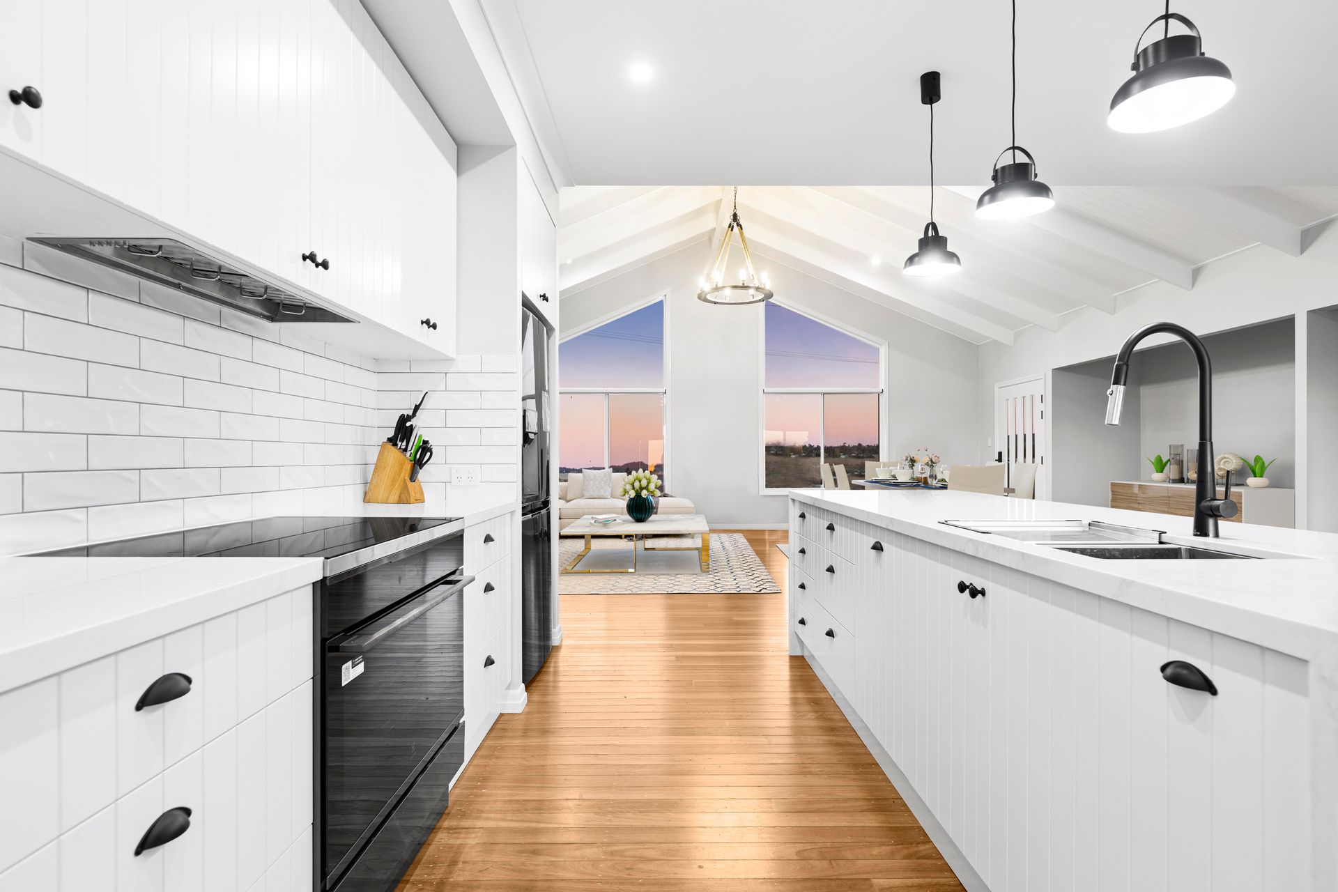 Show stopping interiors, practical galley kitchen with butler's pantry. Open living with raked cathedral ceilings and a sun drenched north facing outlook for natural winter warmth.