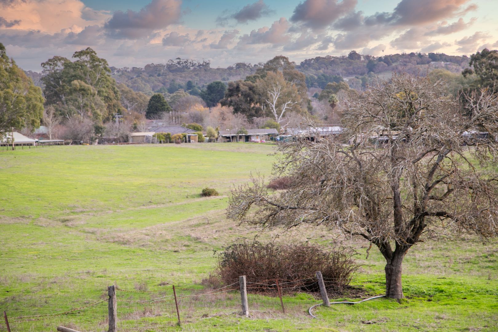 The block itself is gently undulating, dotted with potential building sites that take in wide-open skies and the leafy fringe of the Hills. A bore, mains water connection, and on-site power offer practicality from day one, while an existing shed hints at the land's pastoral past-formerly used for cattle.