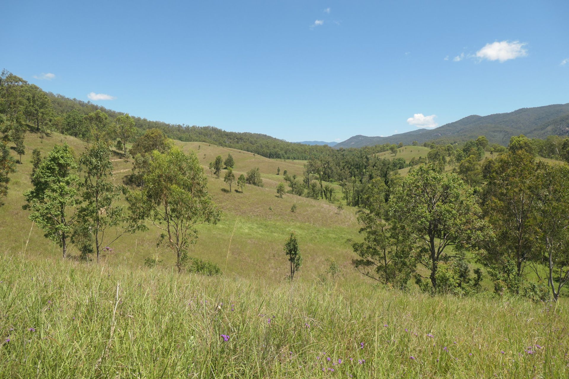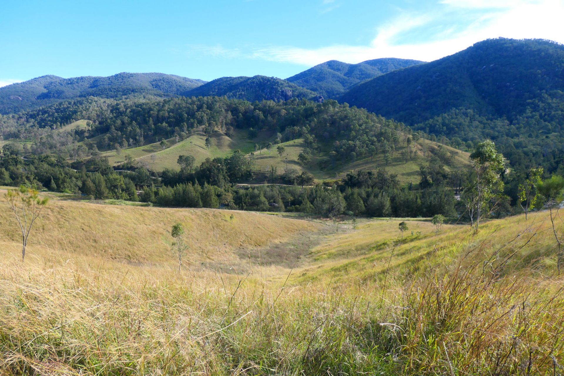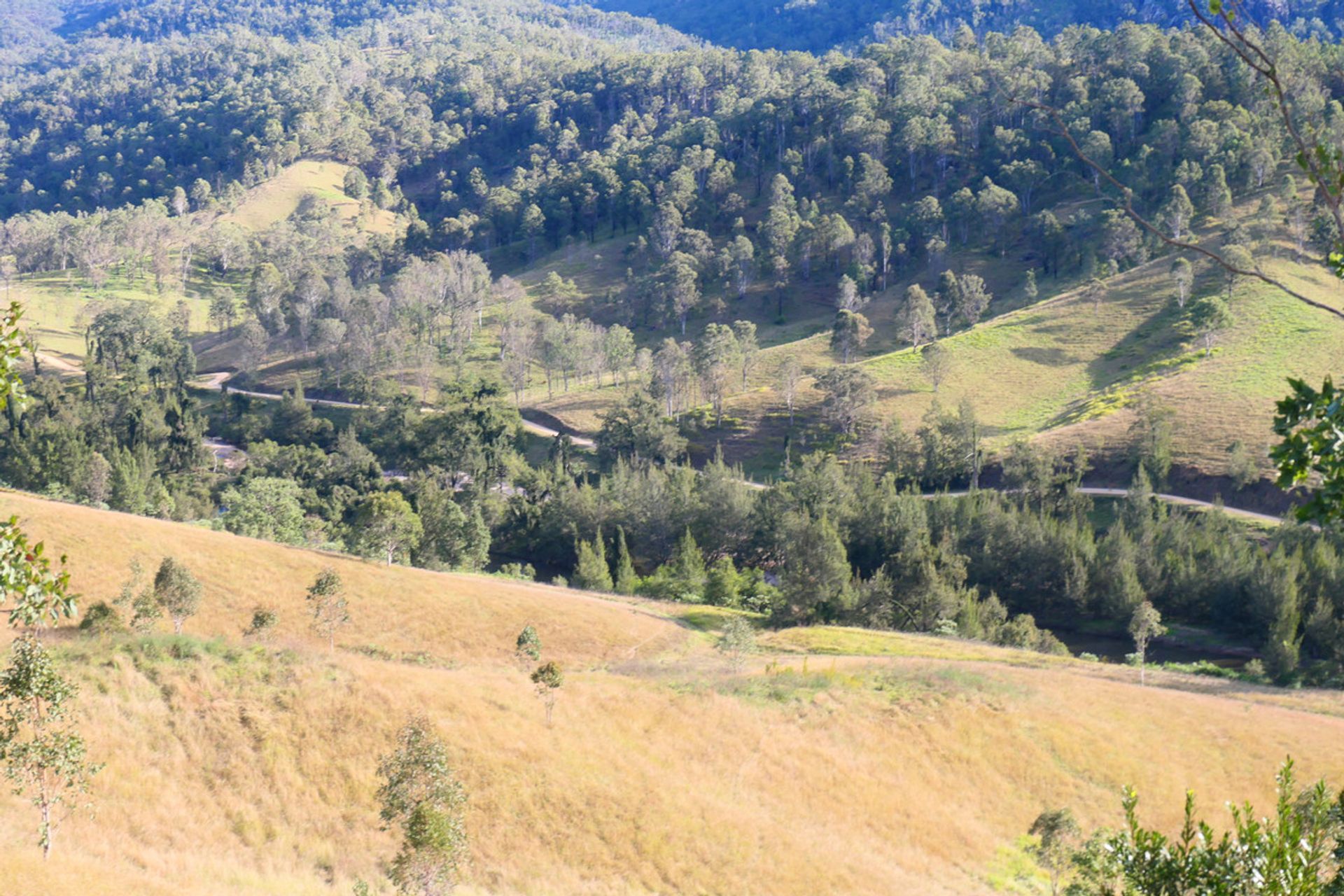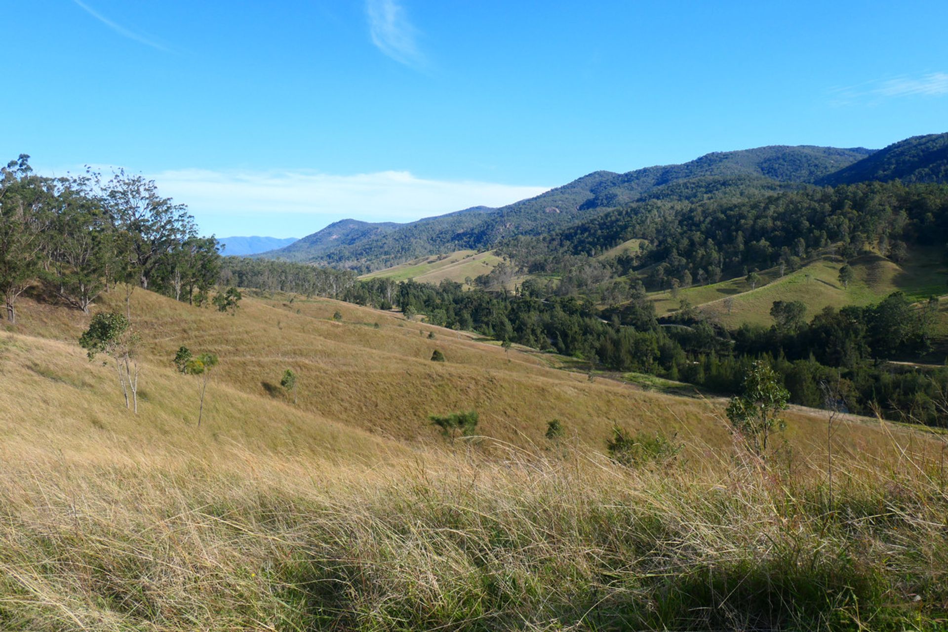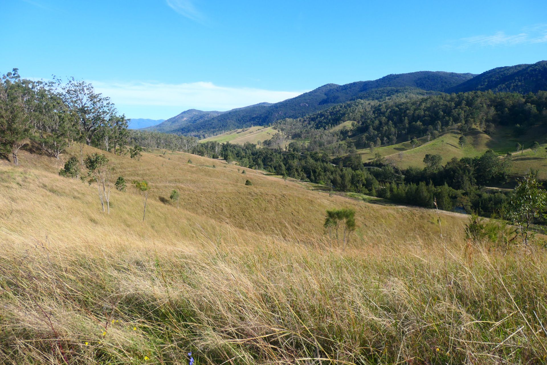 Mountains up the back with another valley behind, which is timbered and has a current pnf