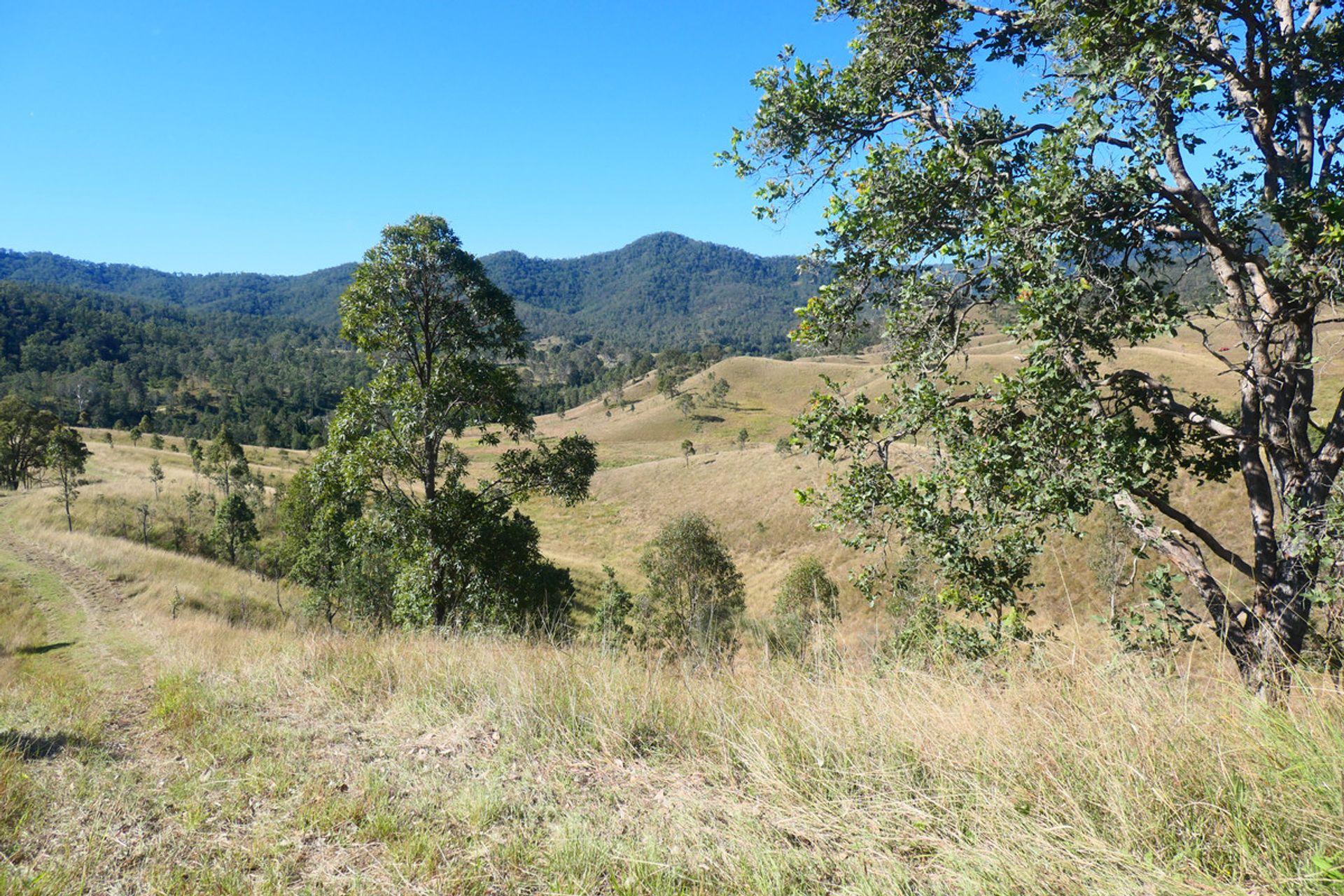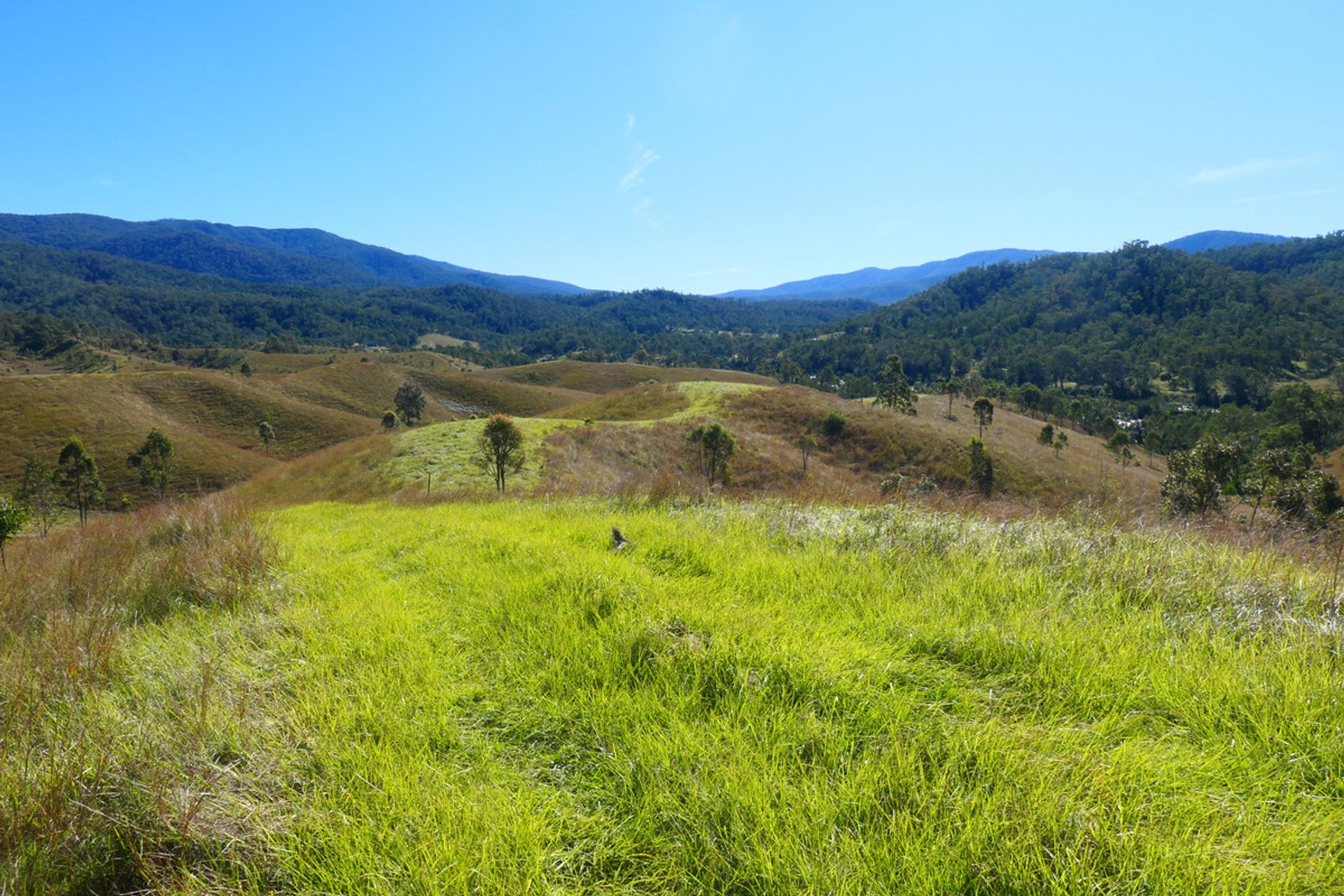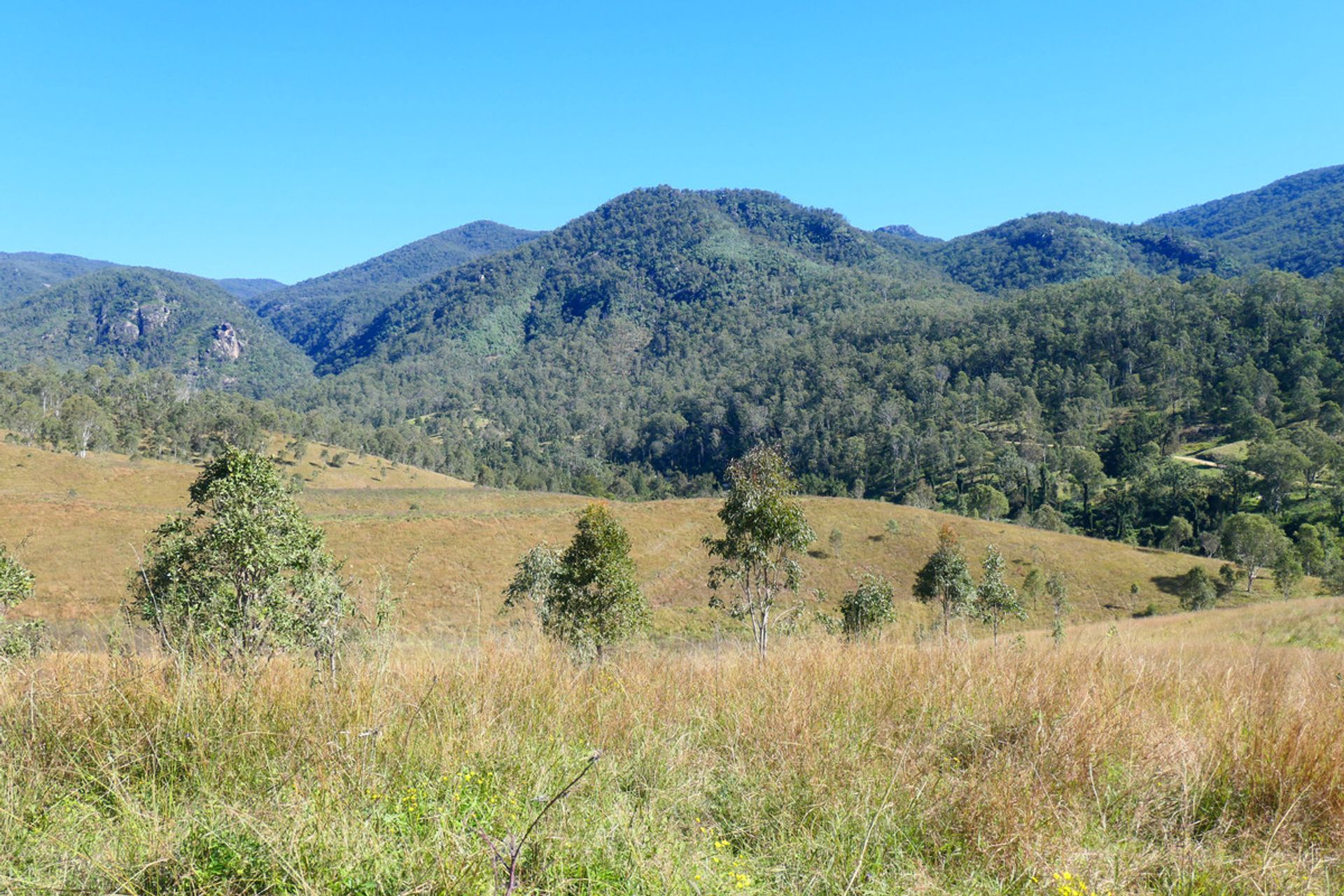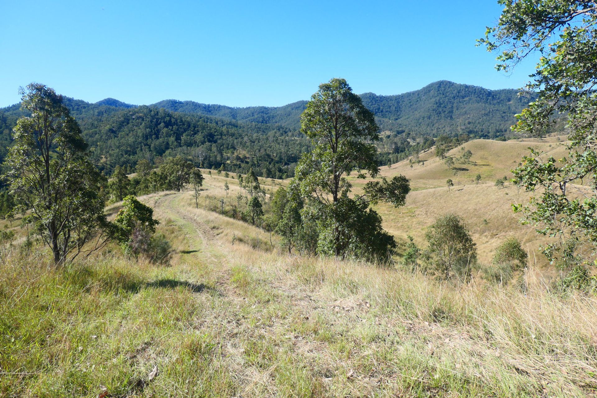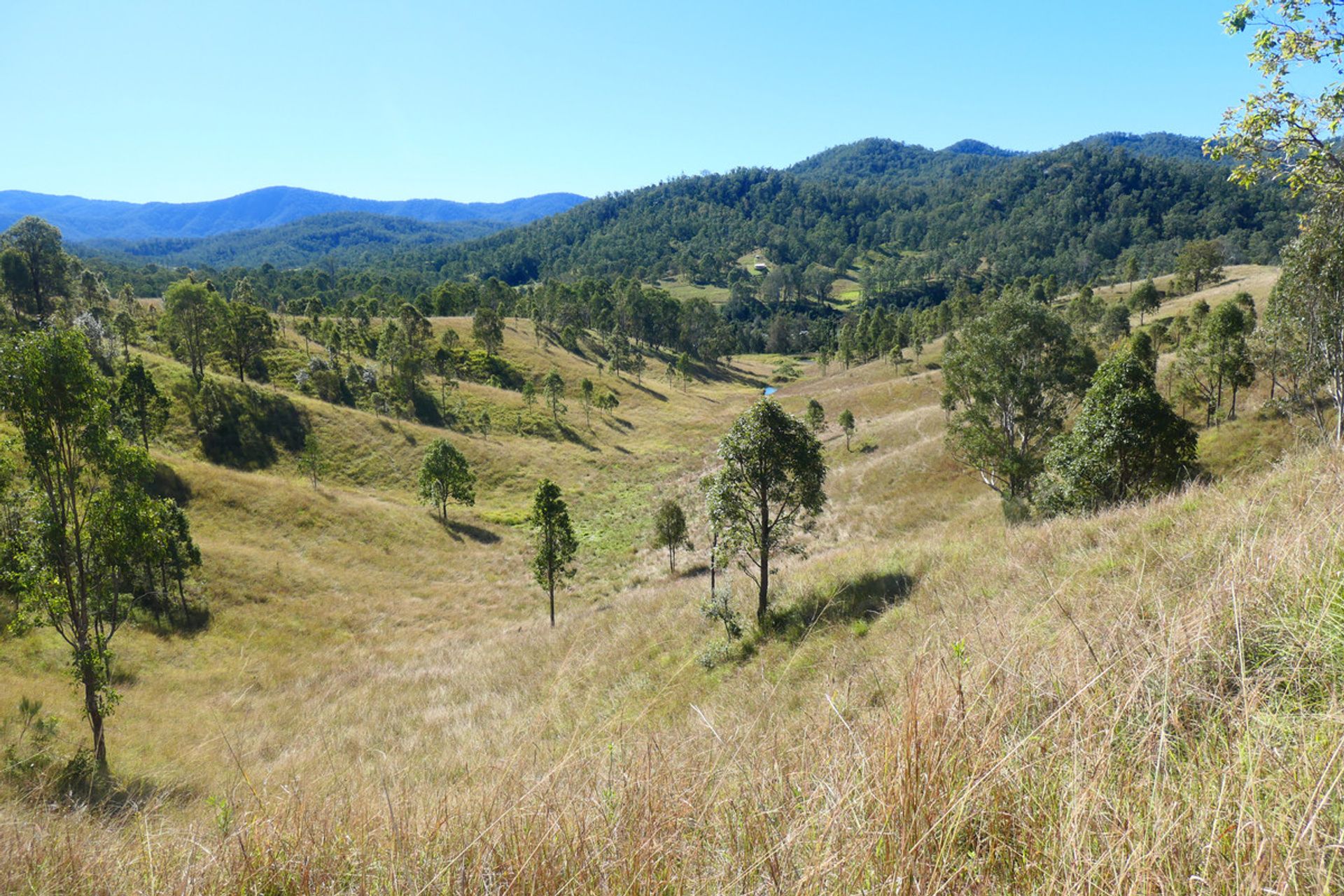 Mountains up the back with another valley behind, which is timbered and has a current pnf