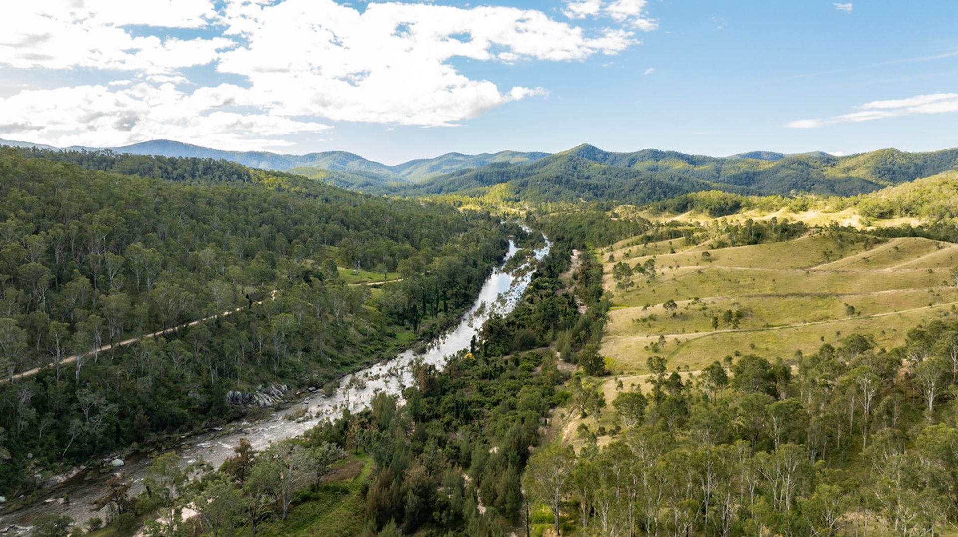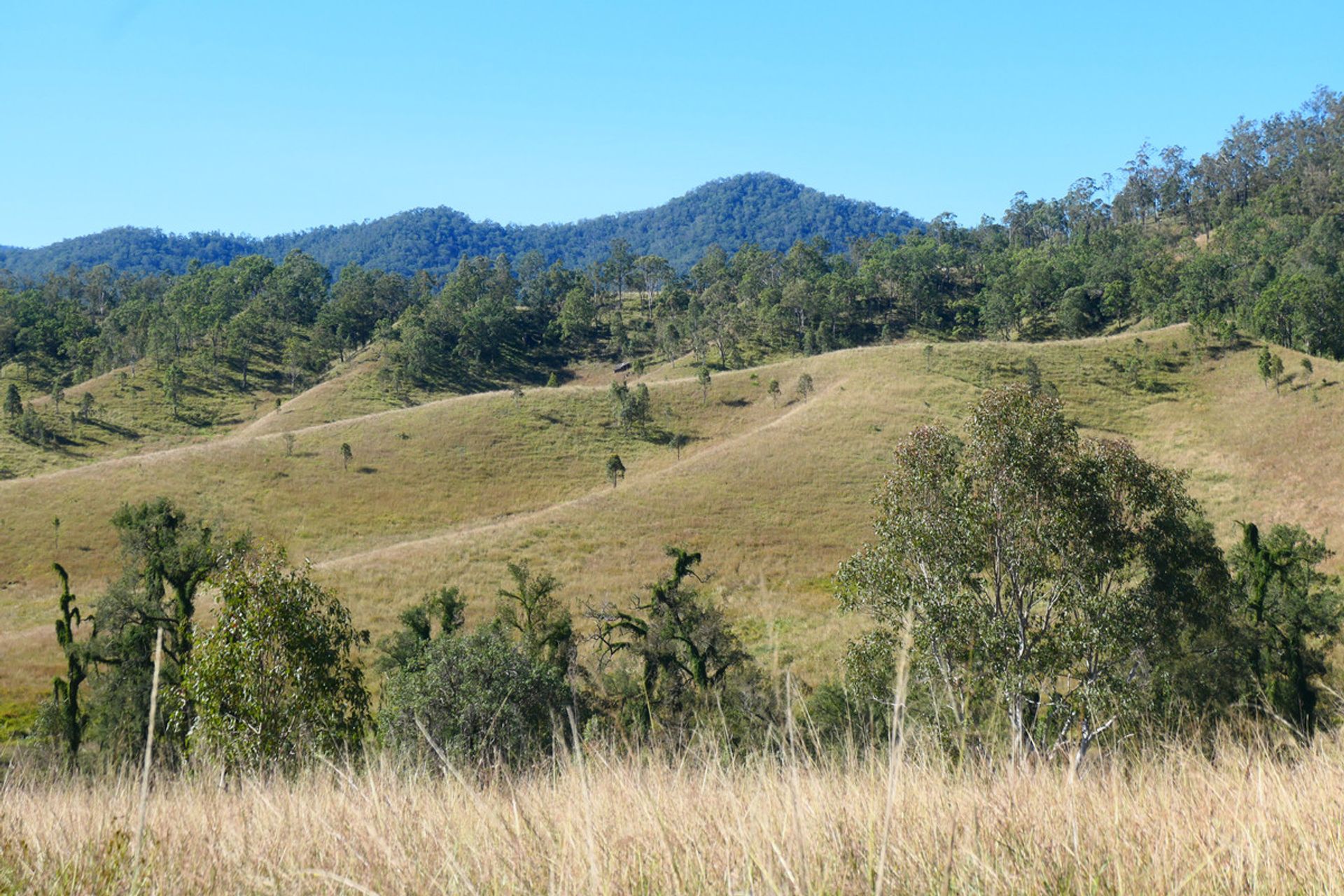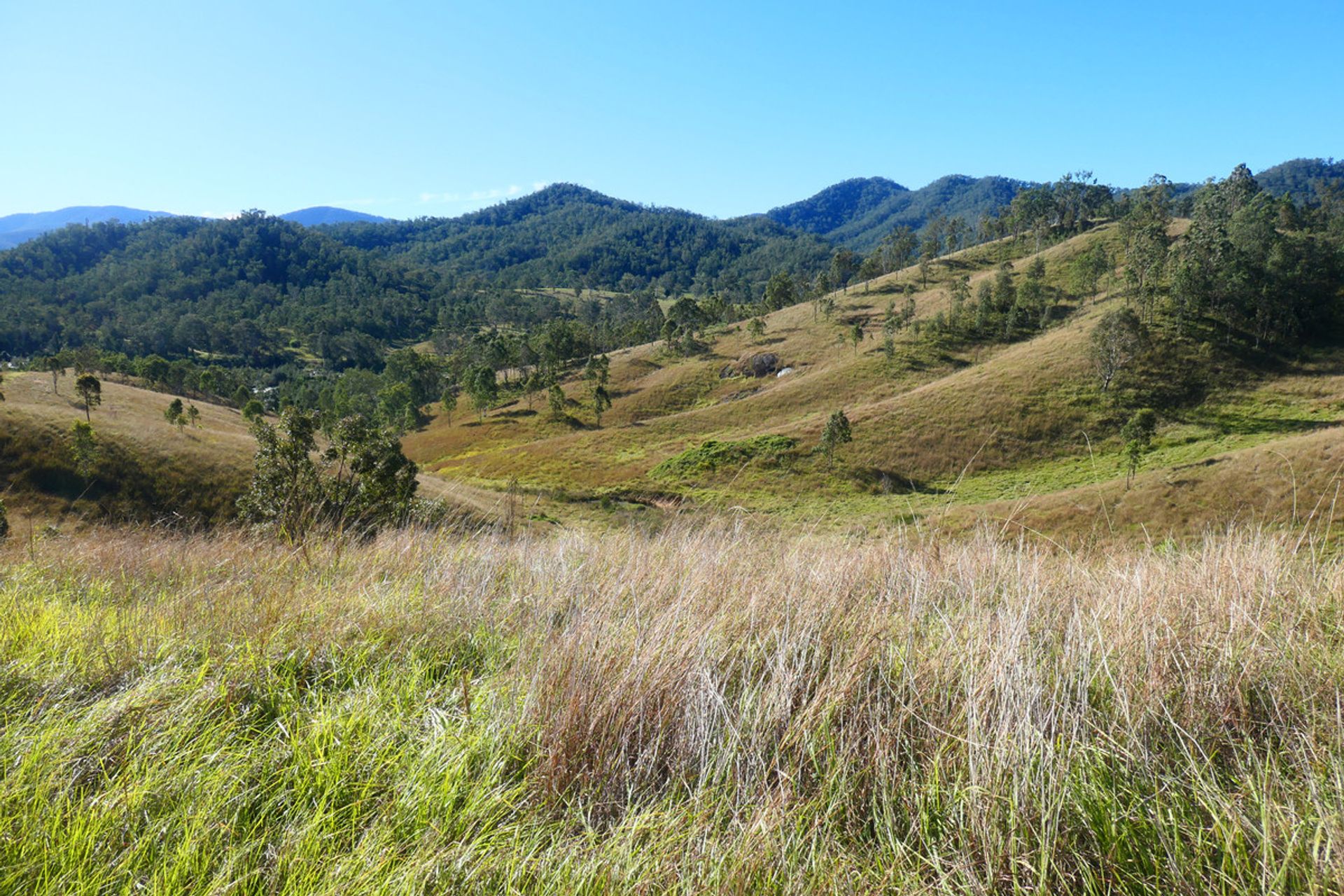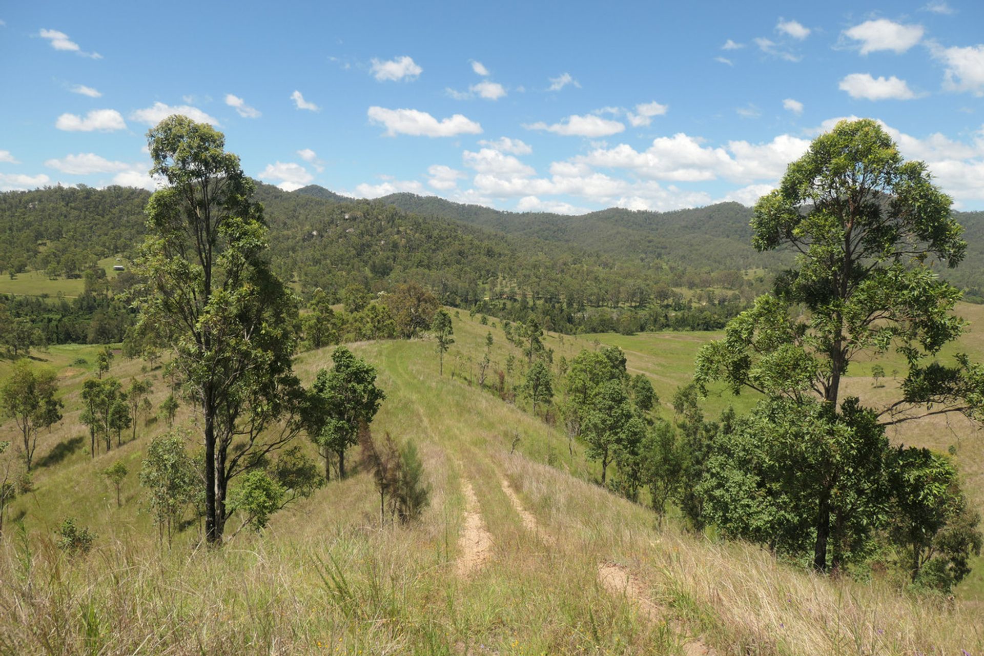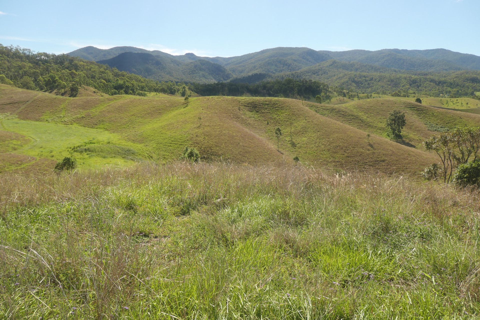 Mountains up the back with another valley behind, which is timbered and has a current pnf