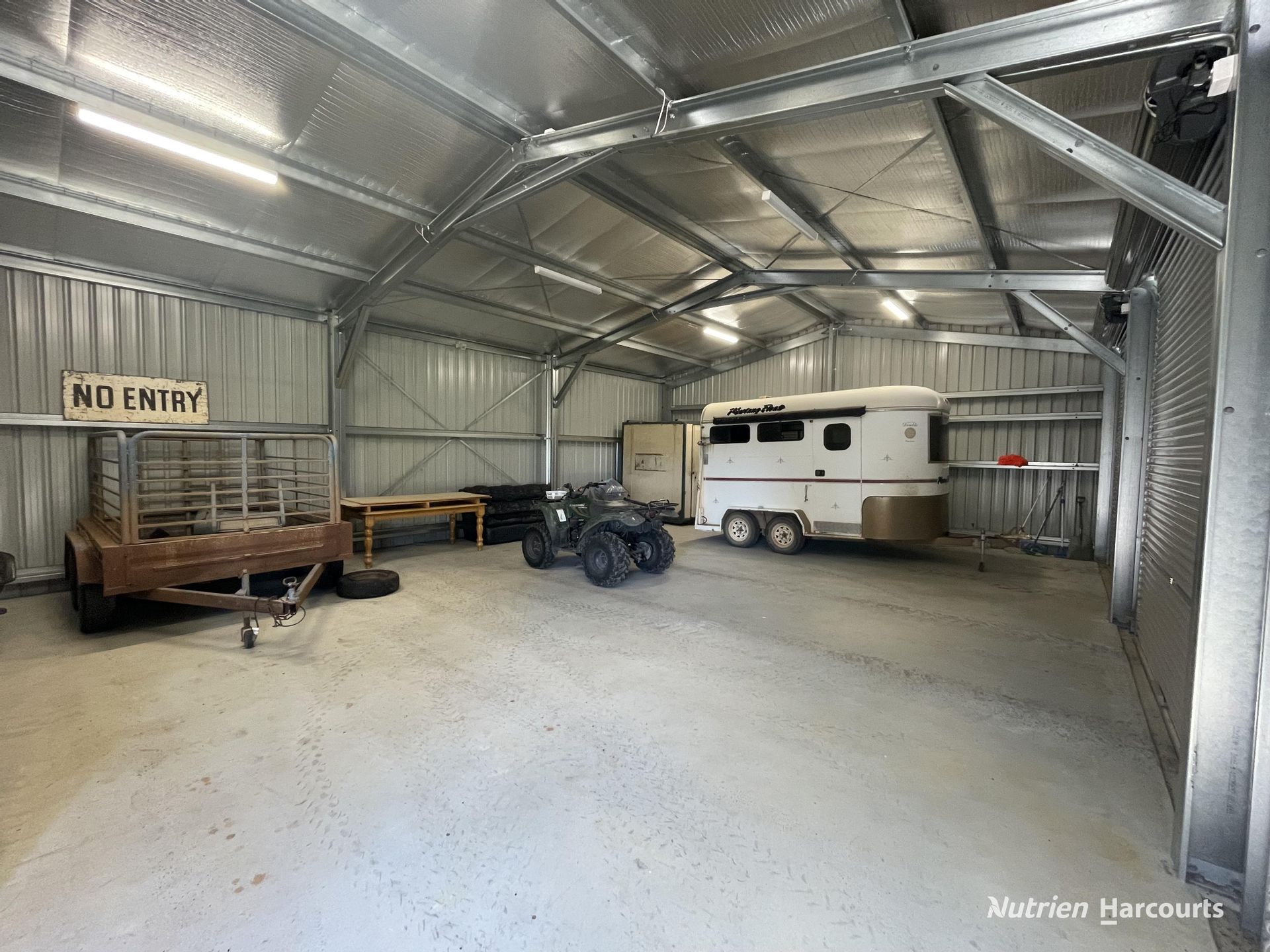 • The detached, three bay garage is perfect for large vehicles, caravans and trailers. The recently built colourbond shed is 12m x 9m and complete with full concrete floor, push button & remote roller doors, power and lights.