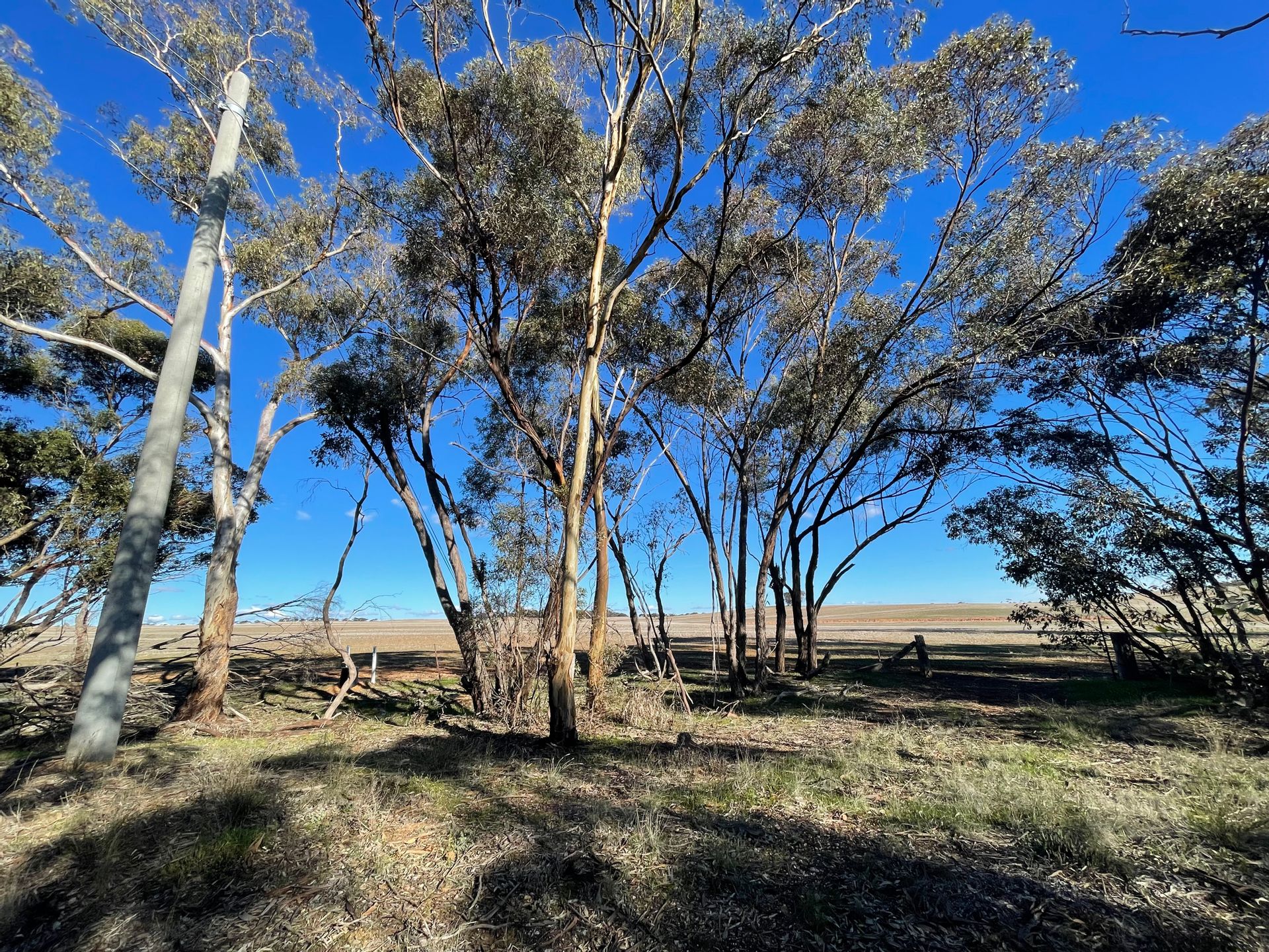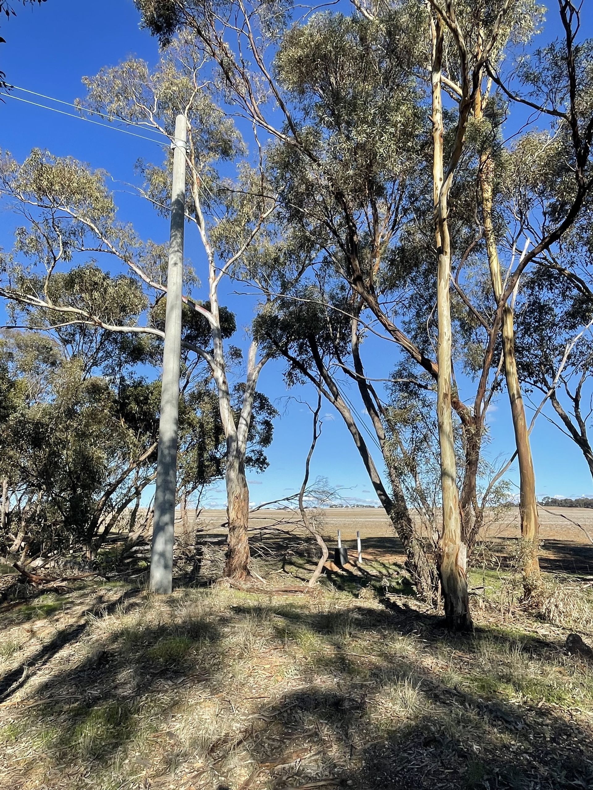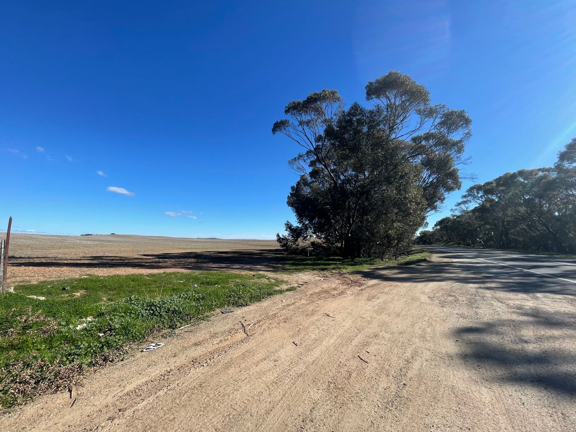 Infrastructure includes highway frontage, bitumen road access, a power pole at the front boundary, and phone lines on-site (not currently connected).