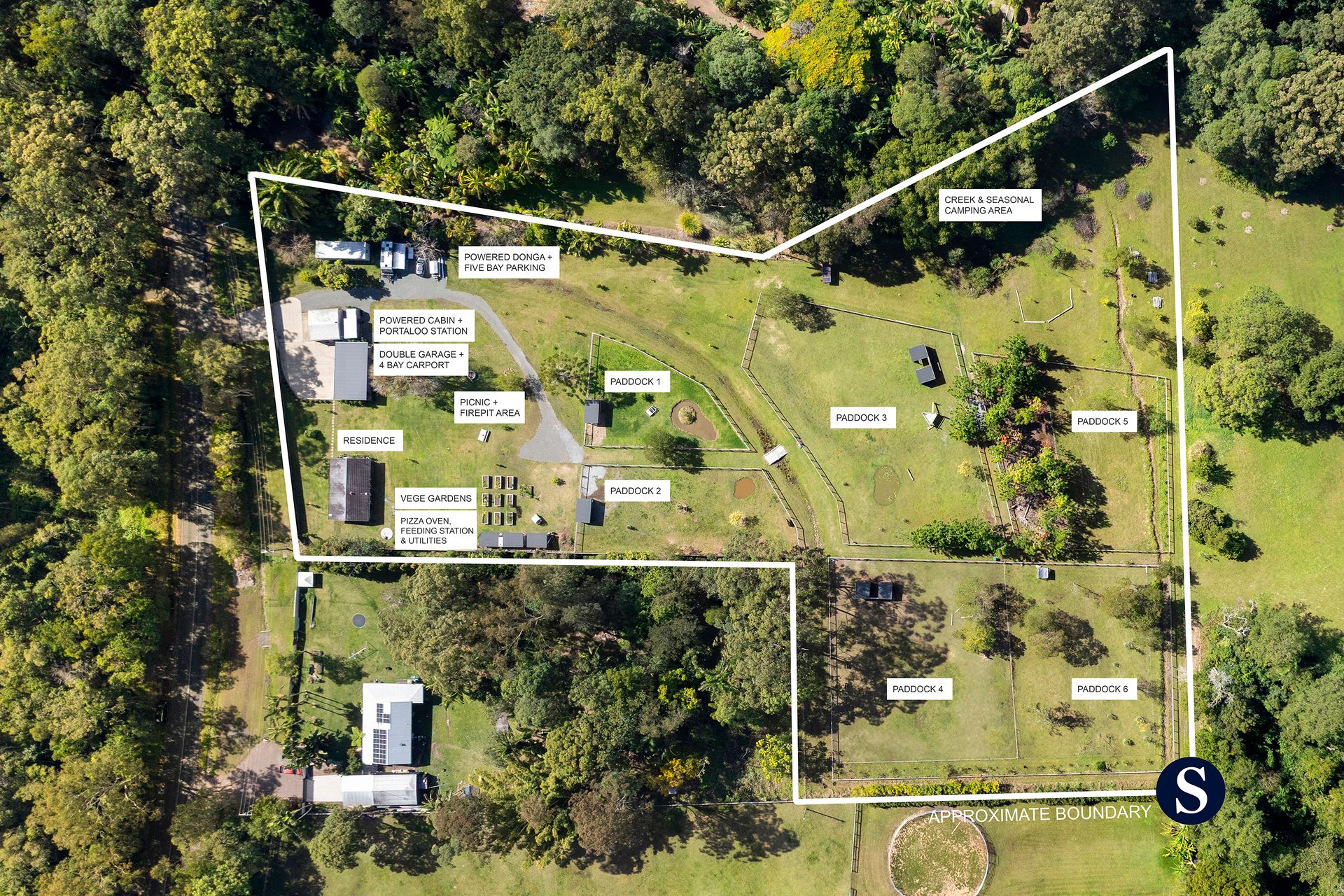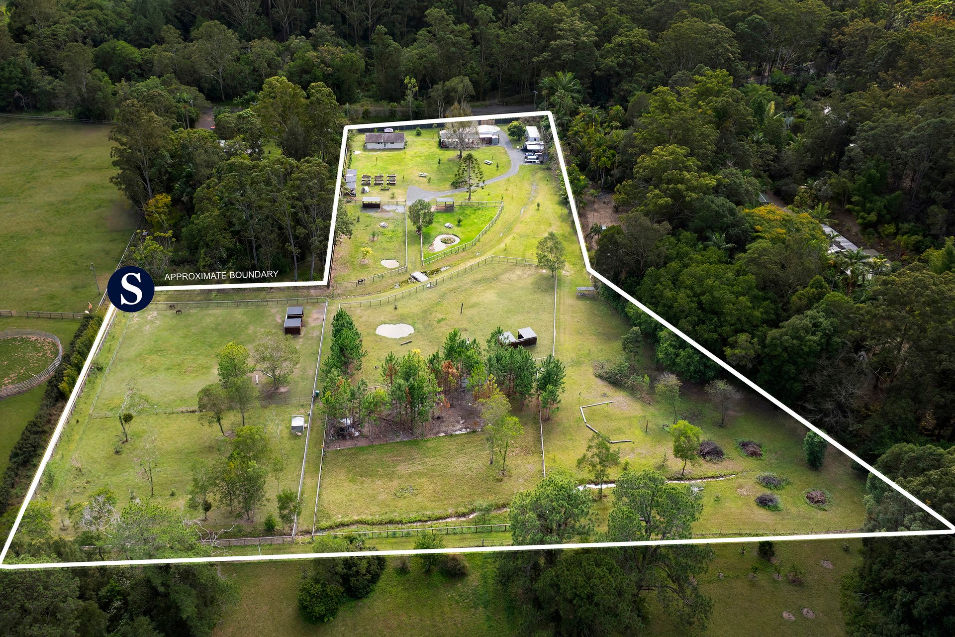 • 6 fully fenced paddocks with split-stay equine fencing
