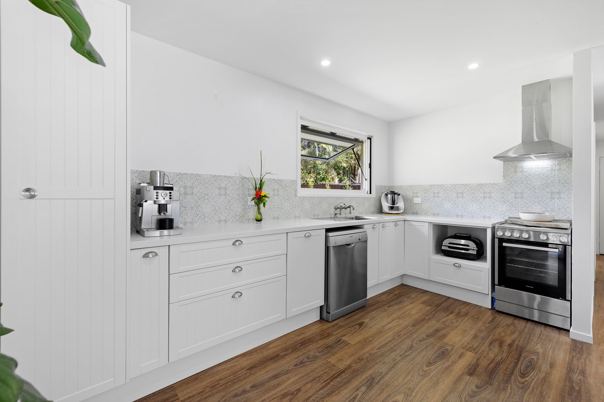 The main residence is a solid two bedroom brick home (the third bedroom is located within the separate guest cabin, which is detached from the main residence) with a beautifully renovated kitchen and bathroom, new timber-look vinyl flooring and reverse cycle air conditioning. The modern farmhouse style kitchen features stone benchtops, VJ cabinetry, premium appliances, striking feature tiles and a gorgeous servery window.