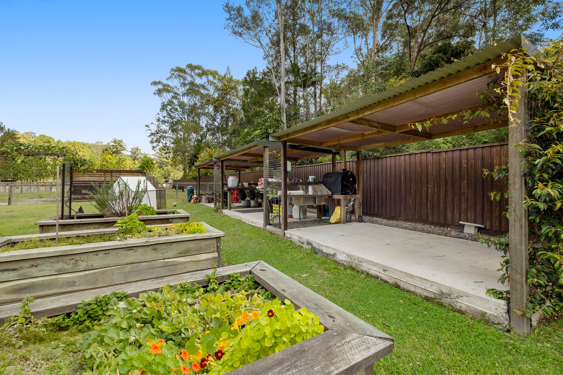Across the 4.7 acres there are low maintenance lawns, ponds, chook pens, natives, citrus orchards and raised herb and vegetable beds. There's also an abundance of infrastructure and outbuildings including a separate guest cabin, powered donga (12m x 3.5m), triple bay shed with machinery storage and feed storage, stables, 4-bay carport, double lockup garage and more! Alfresco entertaining is an absolute delight here - simply fire up the pizza oven and the firepit and kick back with friends and family around the idyllic picnic tables.
