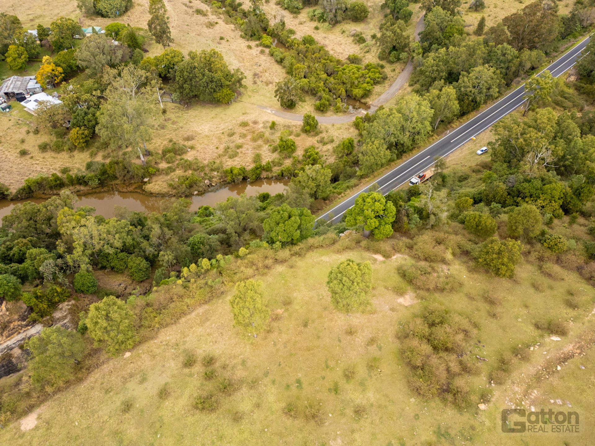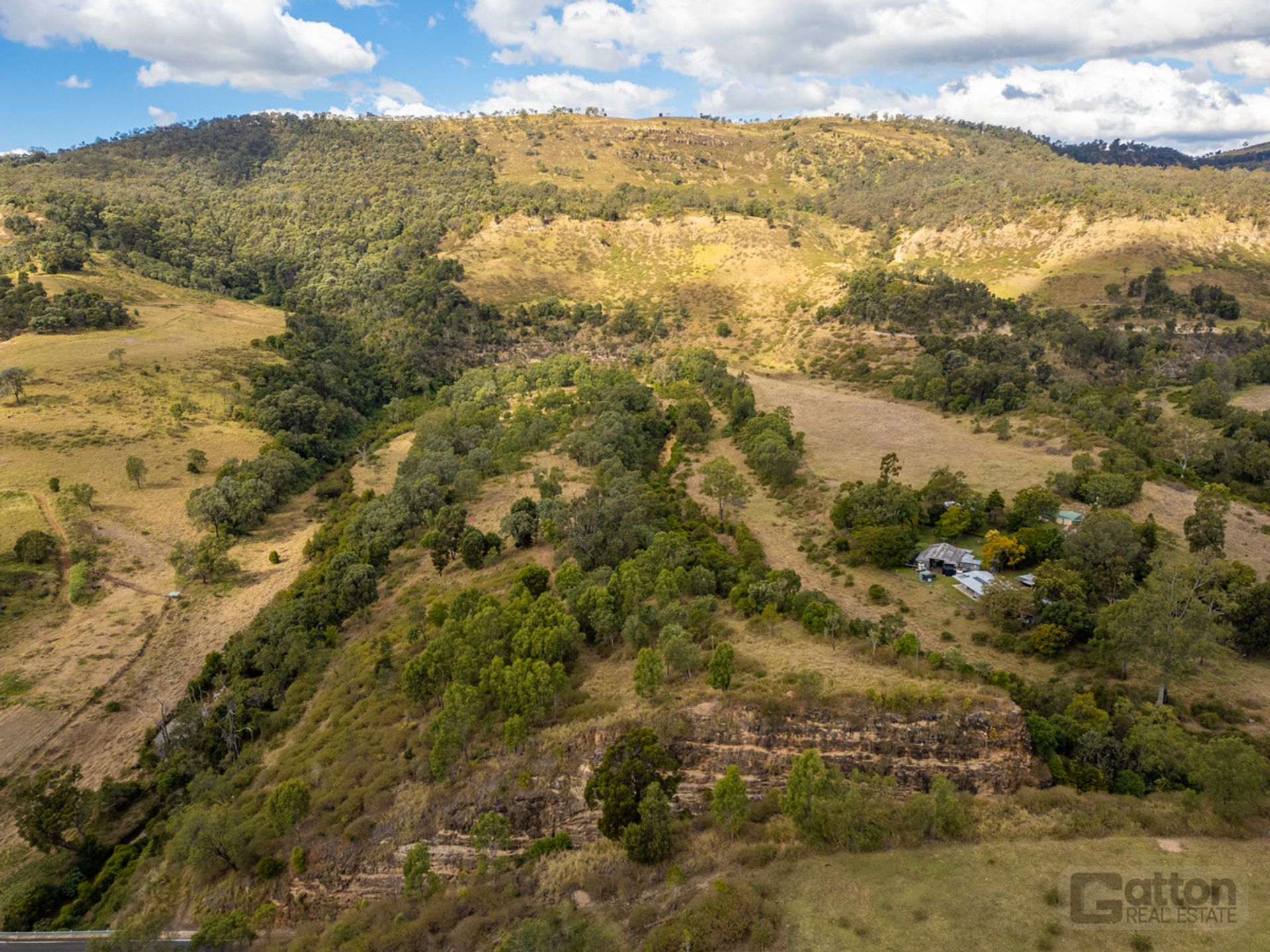 Boasting bitumen frontage on Gatton–Clifton Road, the property spans both sides of the road while remaining under a single freehold title. A seasonal creek, two dams, and full fencing provide reliable water and containment—perfect for cattle fattening or hobby farming.