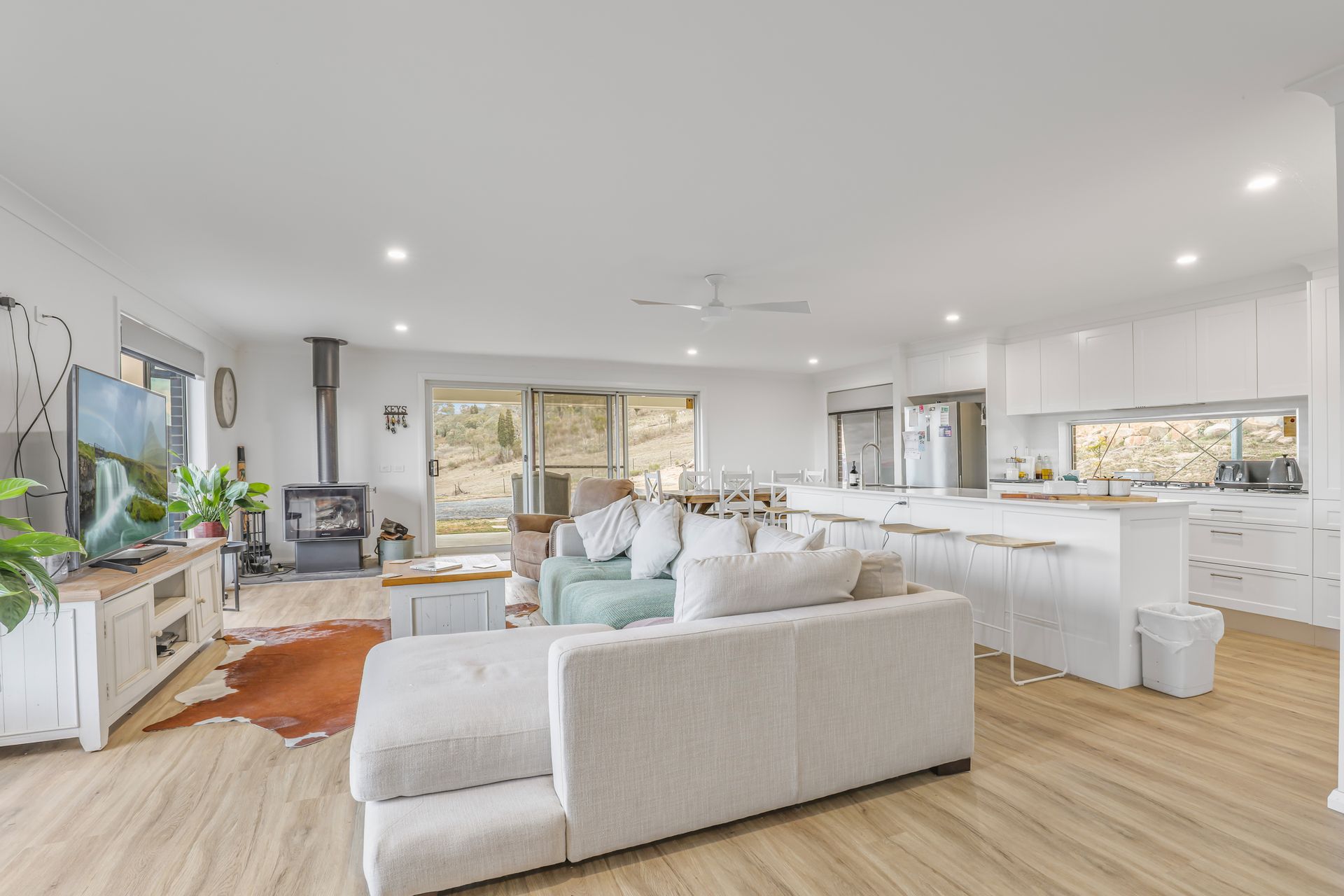 • Living spaces including lounge/dining off kitchen with wood fire, double roller blinds throughout