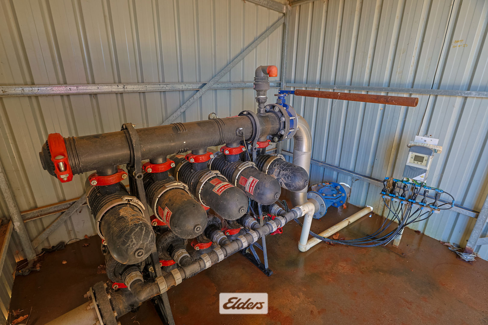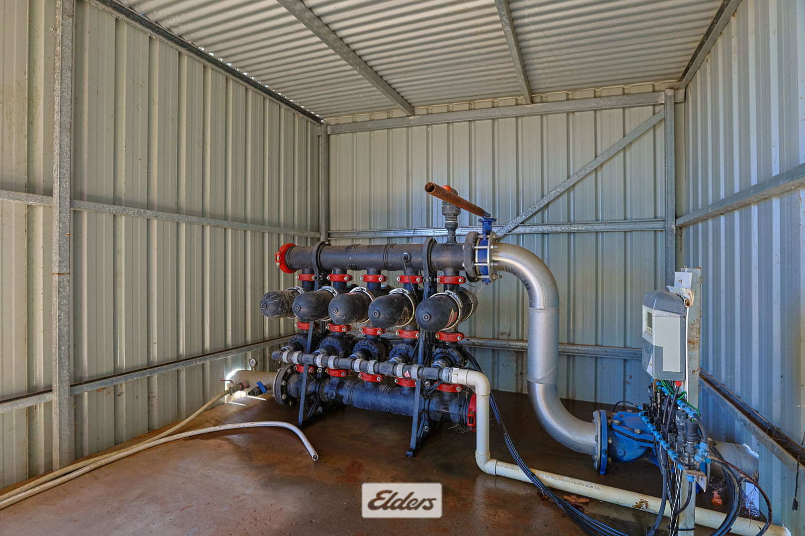 Supplied from dedicated 90kW pump with variable speed drive with mainline direct from the Murray River supplying Drip irrigation with 2 x spin disc filtration across three dedicated fertigation sheds.