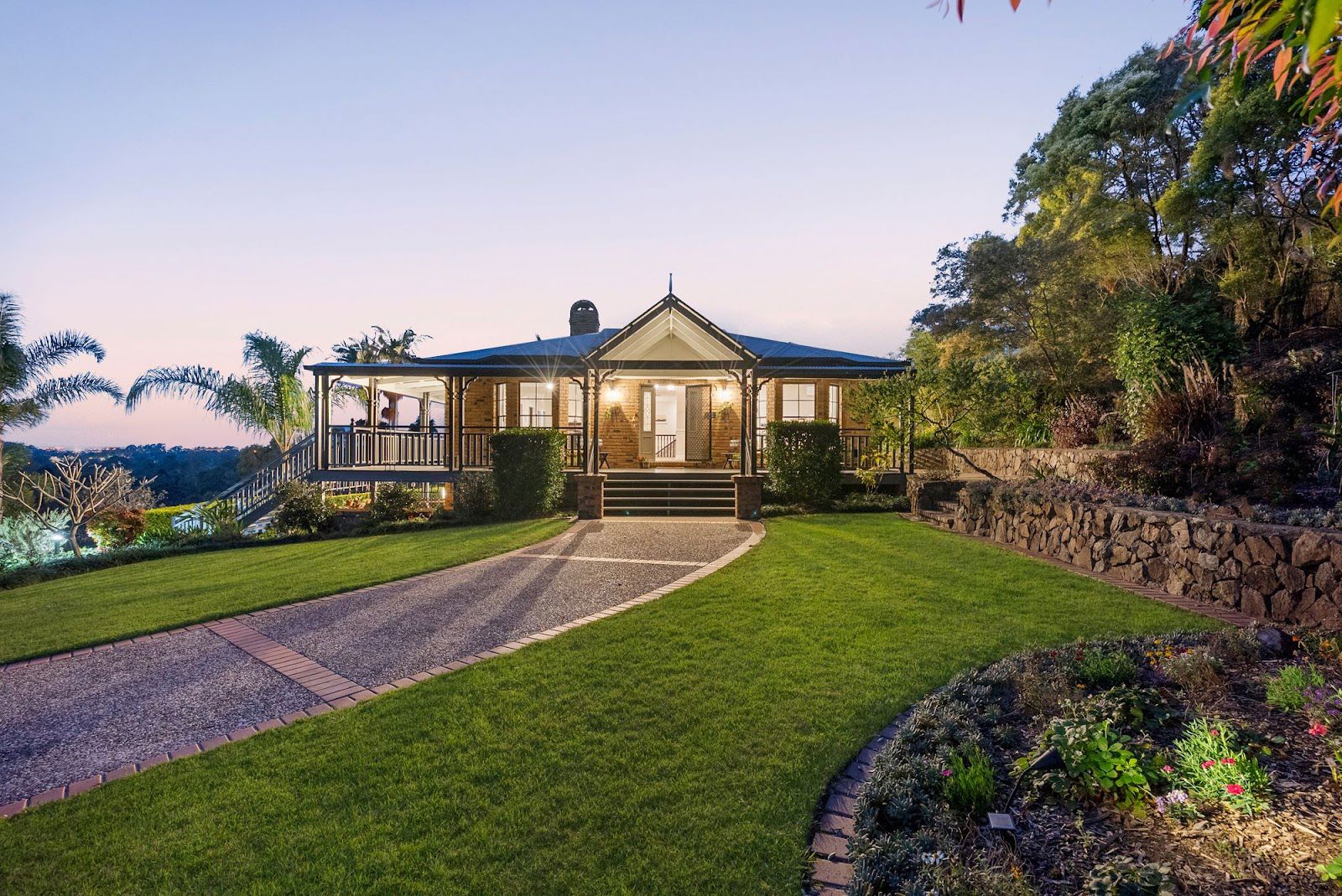 Wide wrap-around veranda with breath-taking views .