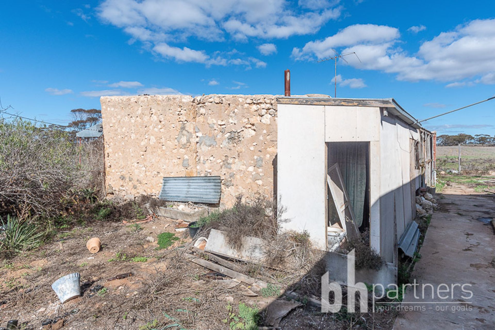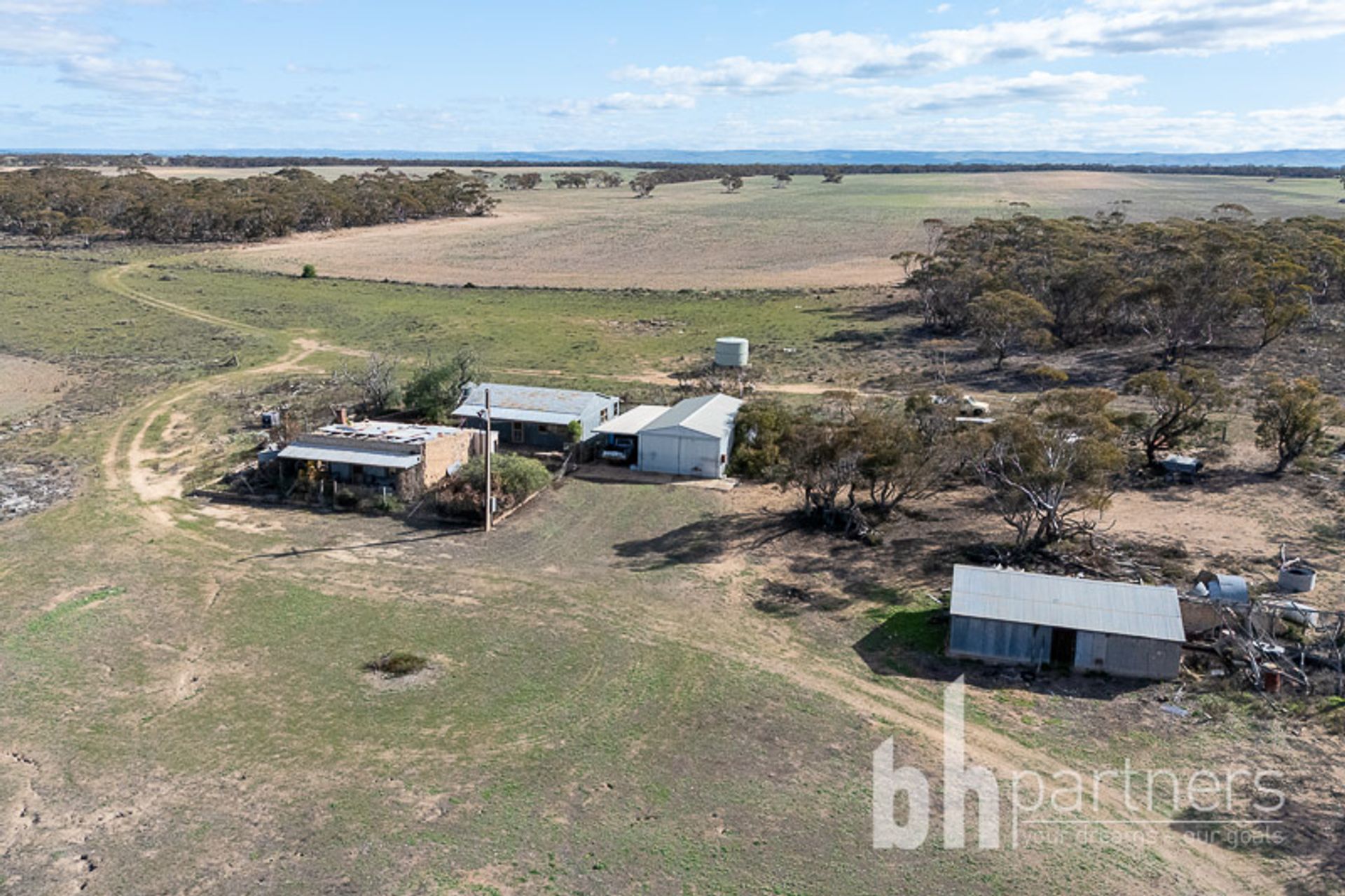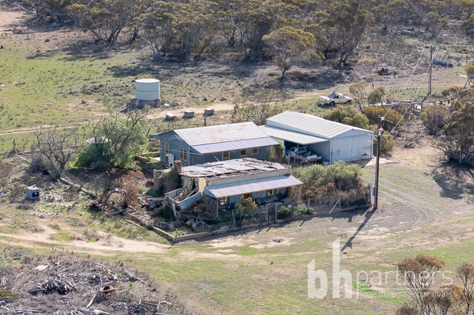 There are no utilities currently but there is an old bore which may prove very useful; a natural dam sits to the eastern boundary and there are rainwater tanks also. Power poles run across the block and can be re-connected to the house and sheds