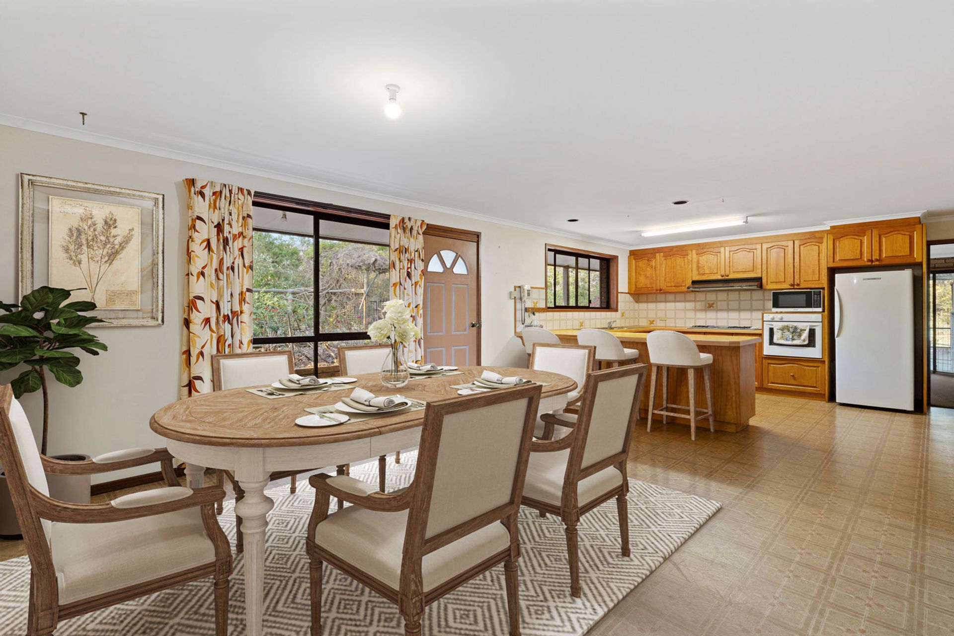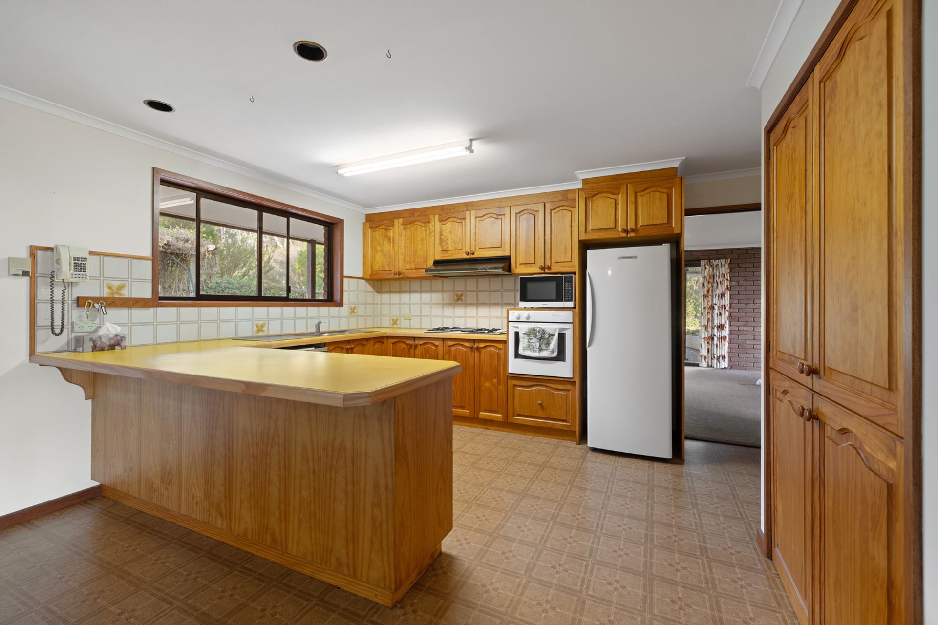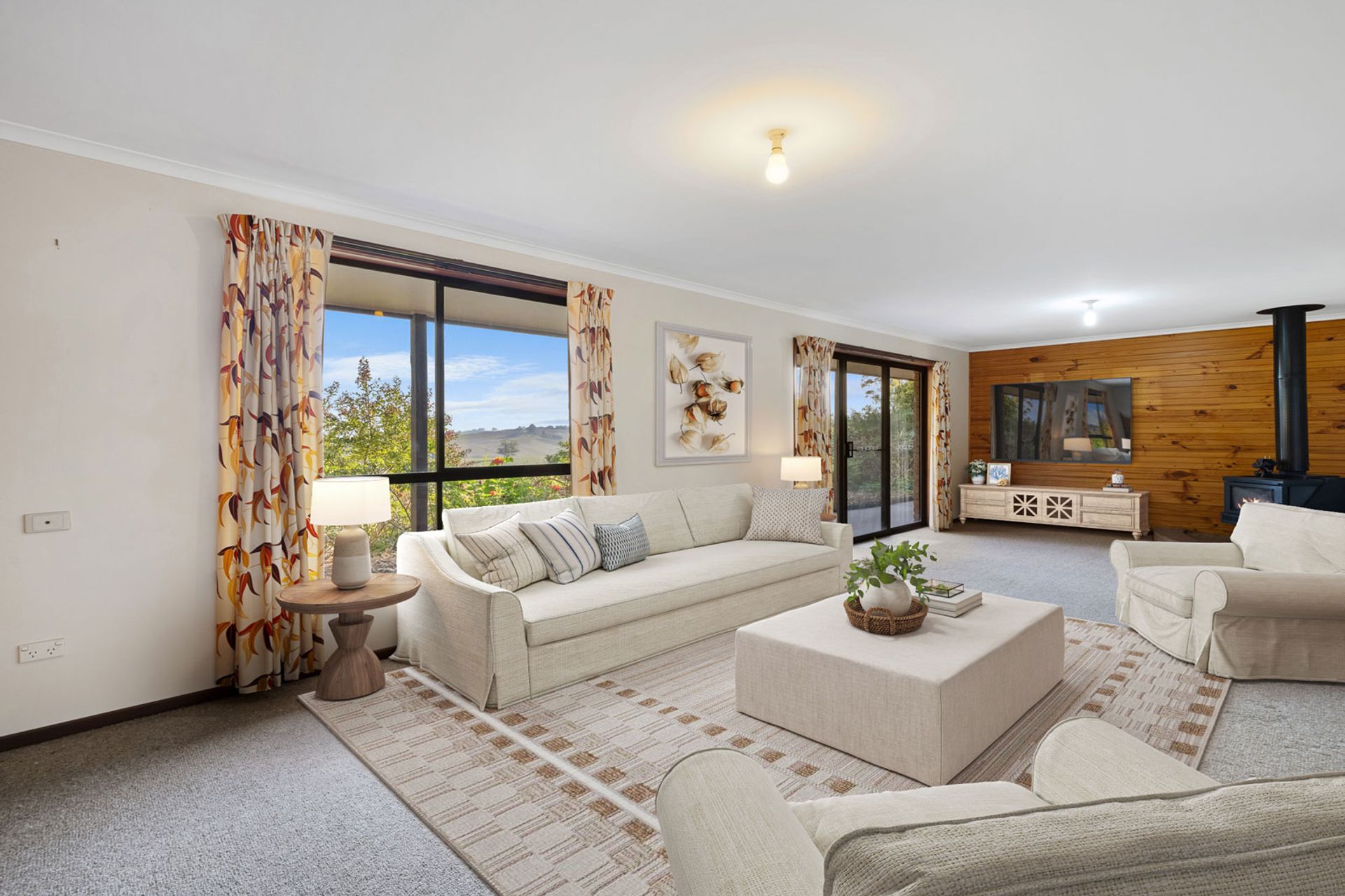 Encircled by a wide verandah that invites you to sit back and appreciate the peaceful setting, before stepping inside to discover an open-plan kitchen and dining area featuring extensive cabinetry, generous bench space, and a practical layout ideal for both daily living and entertaining. The adjoining lounge creates a warm and welcoming heart of the home, complete with far-reaching outlooks and the cosy glow of a wood fire heater.