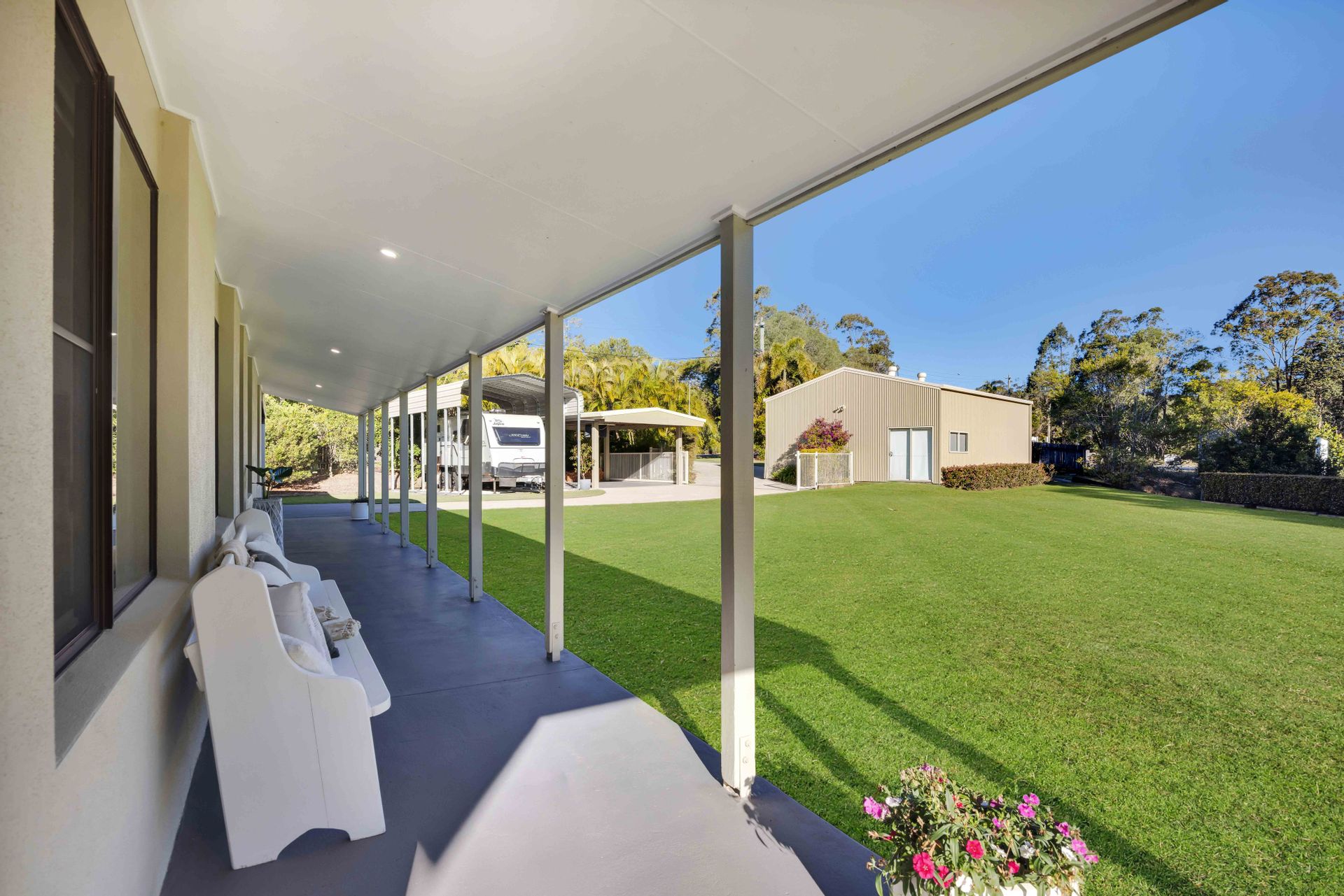 • Outdoor Living at Its Best: Step outside and you're greeted by a park-like oasis with established trees, fruit trees, lush greenery, and breathtaking views of Mount Cooroora. Whether it's lazy afternoons in the garden, family BBQs, or camping under the stars, this outdoor haven is made for making memories.