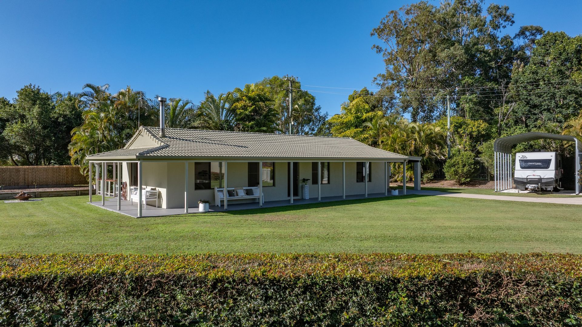 • Sheds, Space & Storage Galore: With an 8mx10m 3-bay powered main shed, a second 12 m x7m shed, a third 12m x 6m machinery open shed, 2 carports, a caravan carport and dual driveway access, and loads of flat, usable land, there's ample room for floats, boats, trailers, caravans-and the potential to add more infrastructure. It's a dream setup for tradies, hobbyists, or anyone needing space for all the toys.