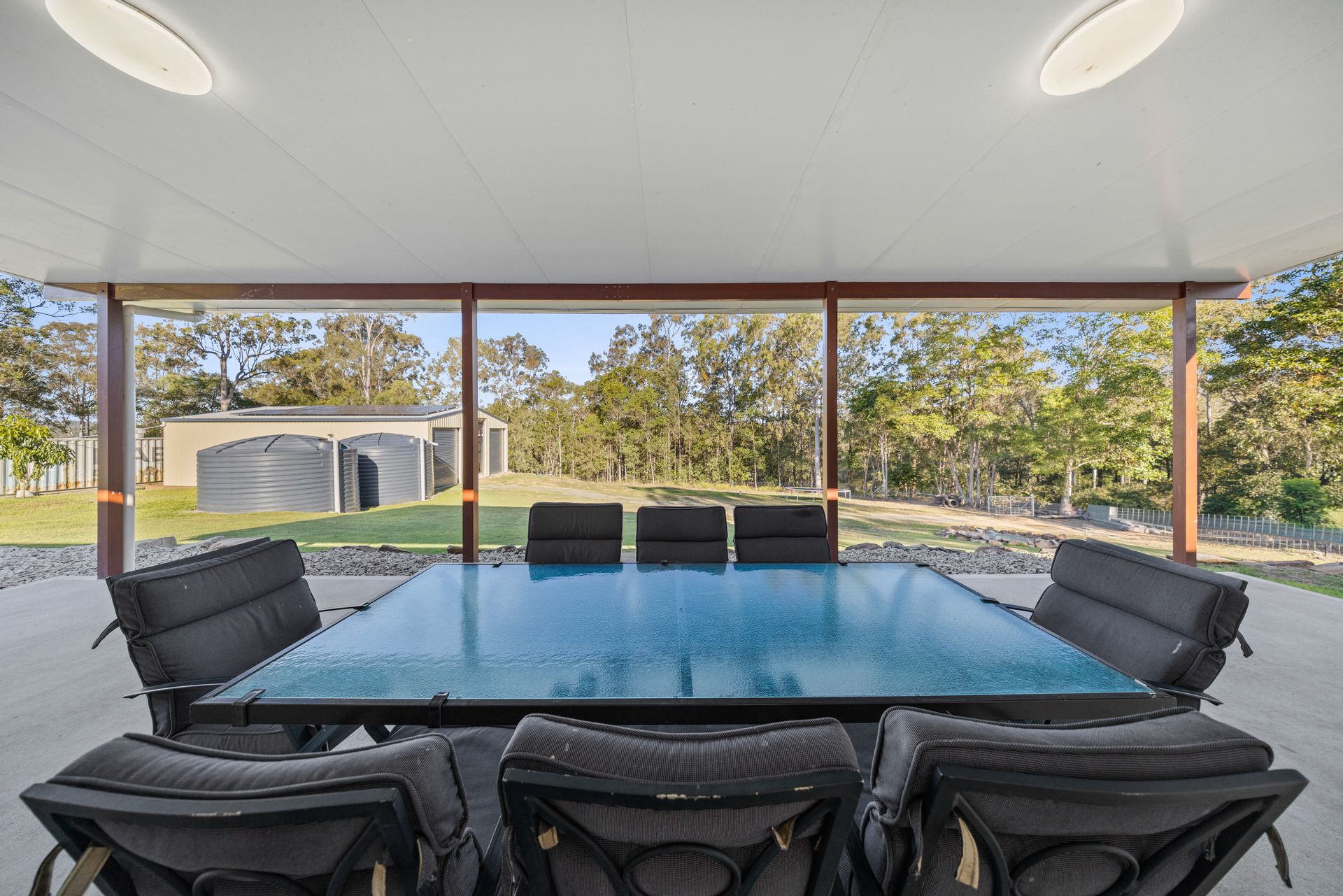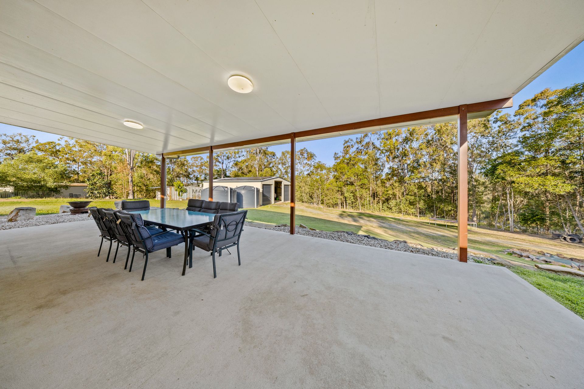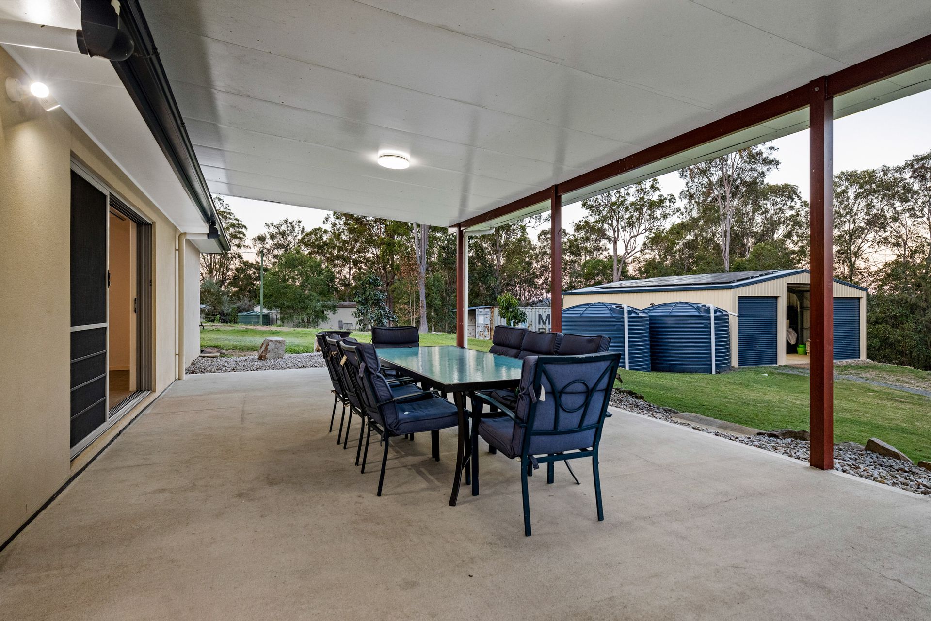 Outdoor living is a highlight, with a huge covered patio perfect for entertaining or simply unwinding in the quiet surrounds. The property also features a high-clearance 6x6m caravan port, a 12x9m powered shed with a built-in room, and a 40ft shipping container fully equipped with power and lights - ideal for secure storage or creative repurposing.