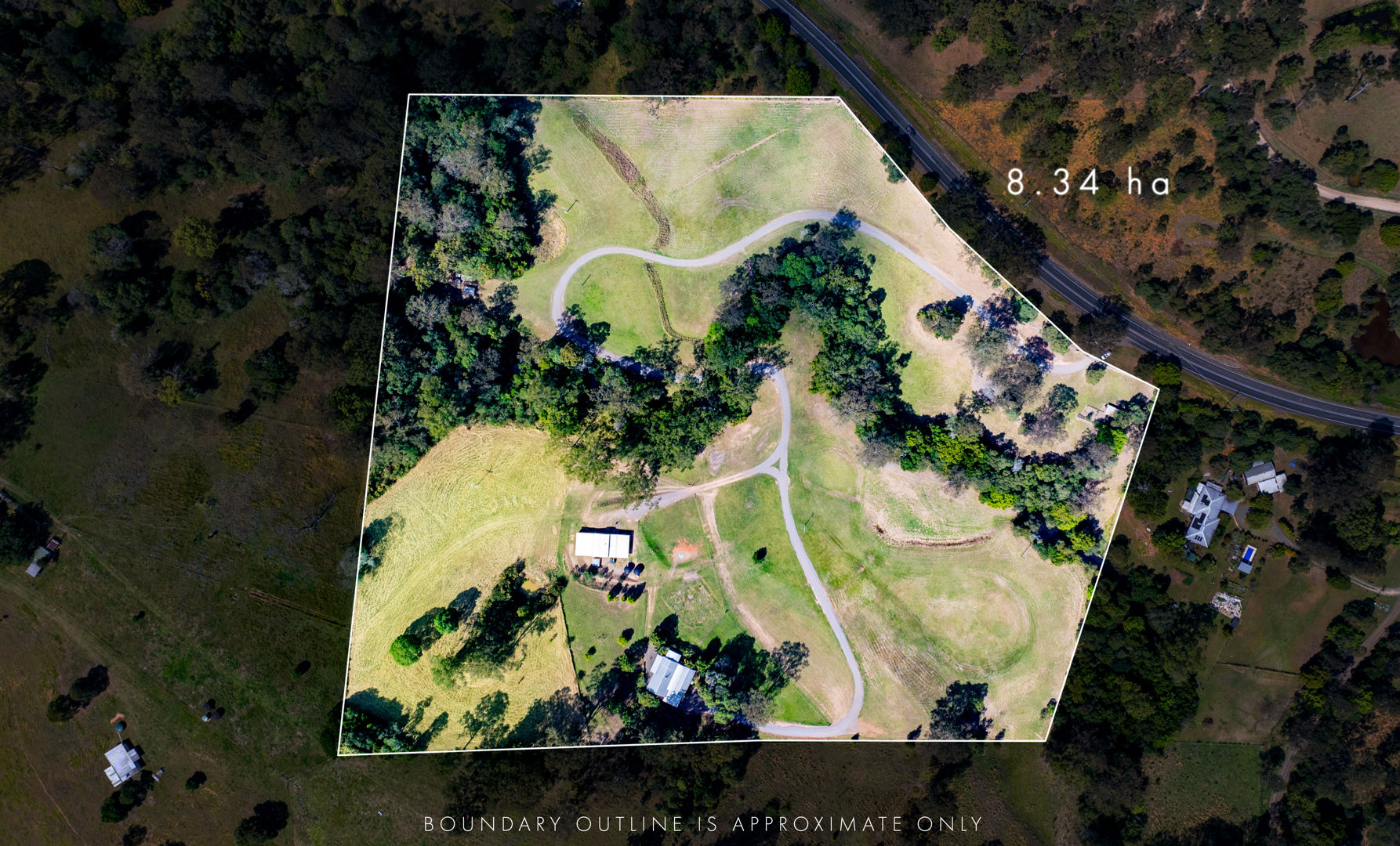 Entering the property, a long private driveway winds past rustic yards and an animal enclosure, across the tree-lined creek and past the large shed before conti ...