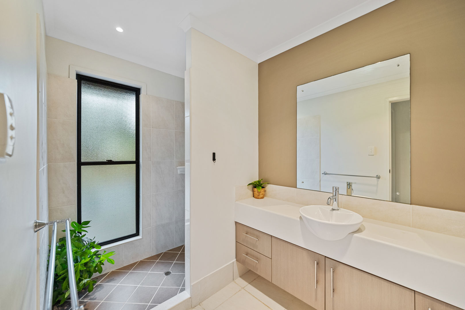 A covered breezeway connects to the second pavilion, a private master retreat of generous proportions. Featuring a spacious bedroom, double vanity ensuite with shower, toilet and a walk-in robe, this haven is thoughtfully designed for comfort and seclusion.