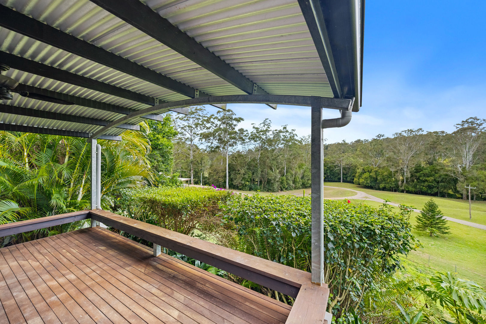 Entering the property, a long private driveway winds past rustic yards and an animal enclosure, across the tree-lined creek and past the large shed before continuing up to the double carport. Here, you'll arrive at a pavilion-style, beautifully crafted 'Bush to Beach' home, perched high and positioned proudly at the rear of the property to capture sweeping views across 20.6 acres of heaven. Designed for those who value privacy, with a permanent spring-fed creek and secure fencing, this estate offers both a sanctuary and a lifestyle opportunity.