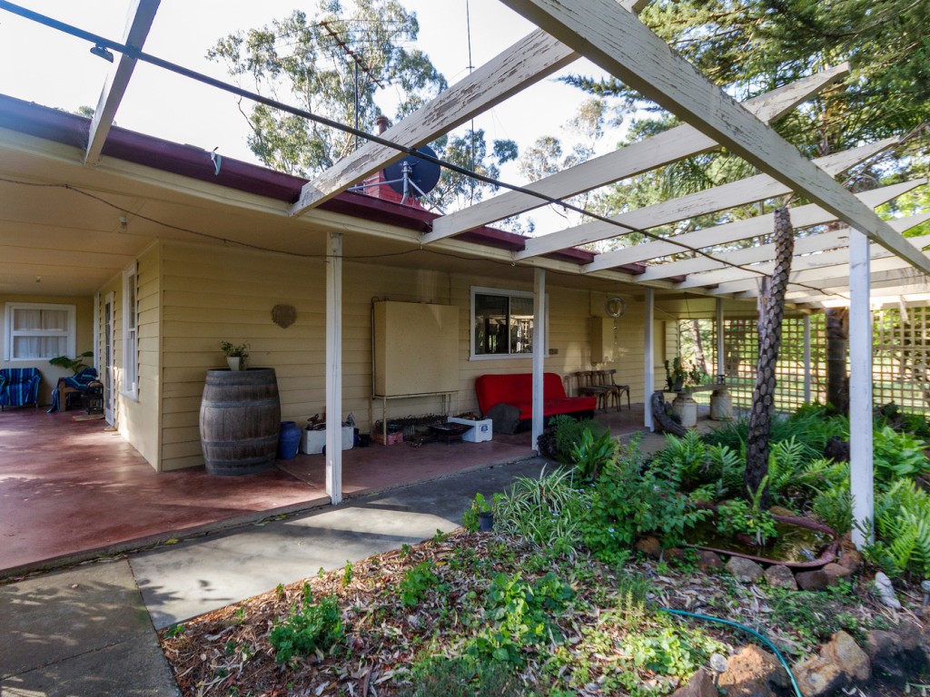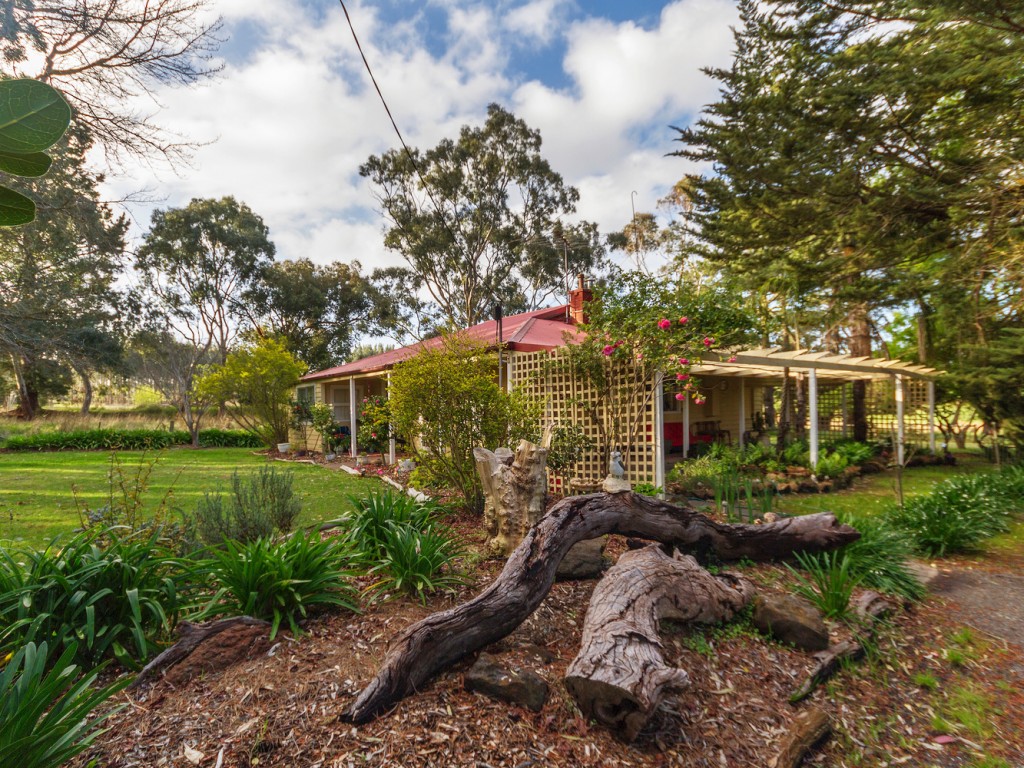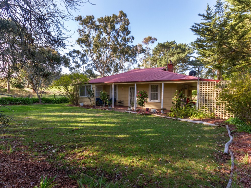 The quaint timber-clad circa 1942 residence is set back from the road behind a shelter of trees. It has 2 bedrooms, both with a small adjoining room that would serve as a WIR &/or sunroom. It has 1 bathroom and a 2nd toilet in the laundry. The large kitchen/dine has a walk in pantry and 2 adjoining small store rooms that could also be used as sunrooms. The separate living/TV/family room completes a very comfortable home with relaxing views from every window. A feature of the home are the wide verandah areas UMR on 2 sides of the house where you can just sit back and take in the relaxing views over the picturesque property and the rolling countryside beyond.